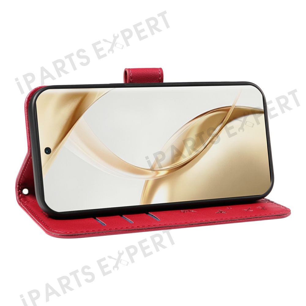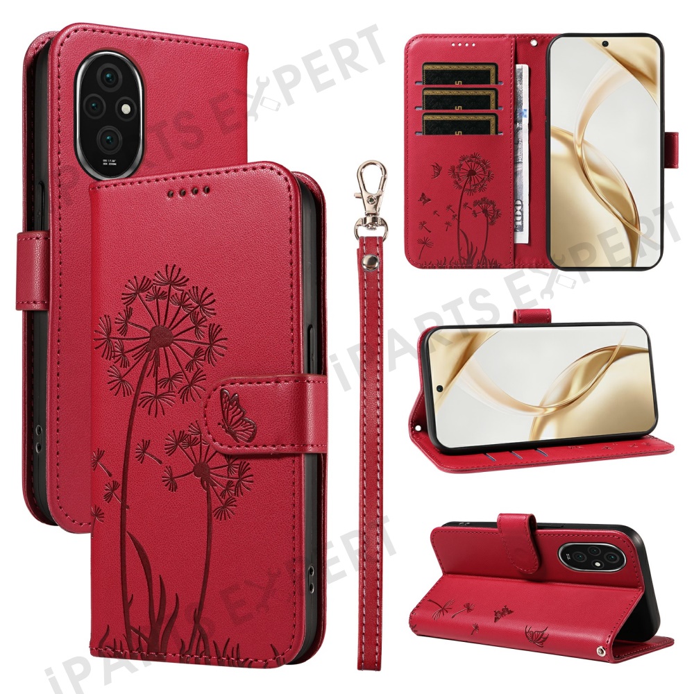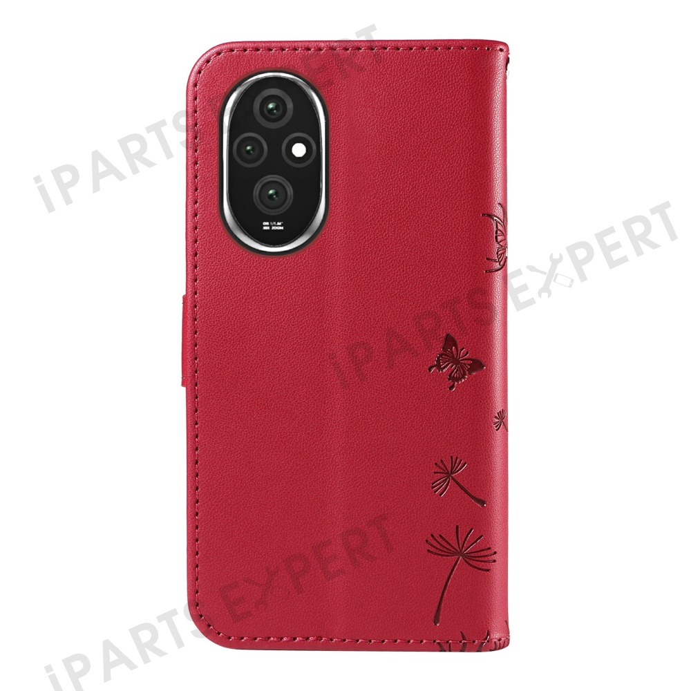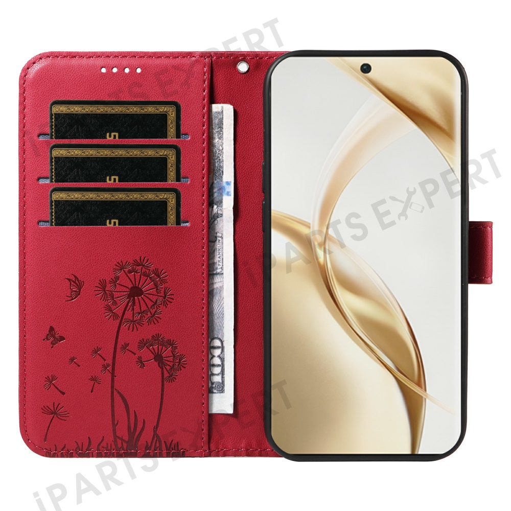 For Honor 200 Pro 5G Leather Case Wallet Phone Cover Dandelion Imprint - Red