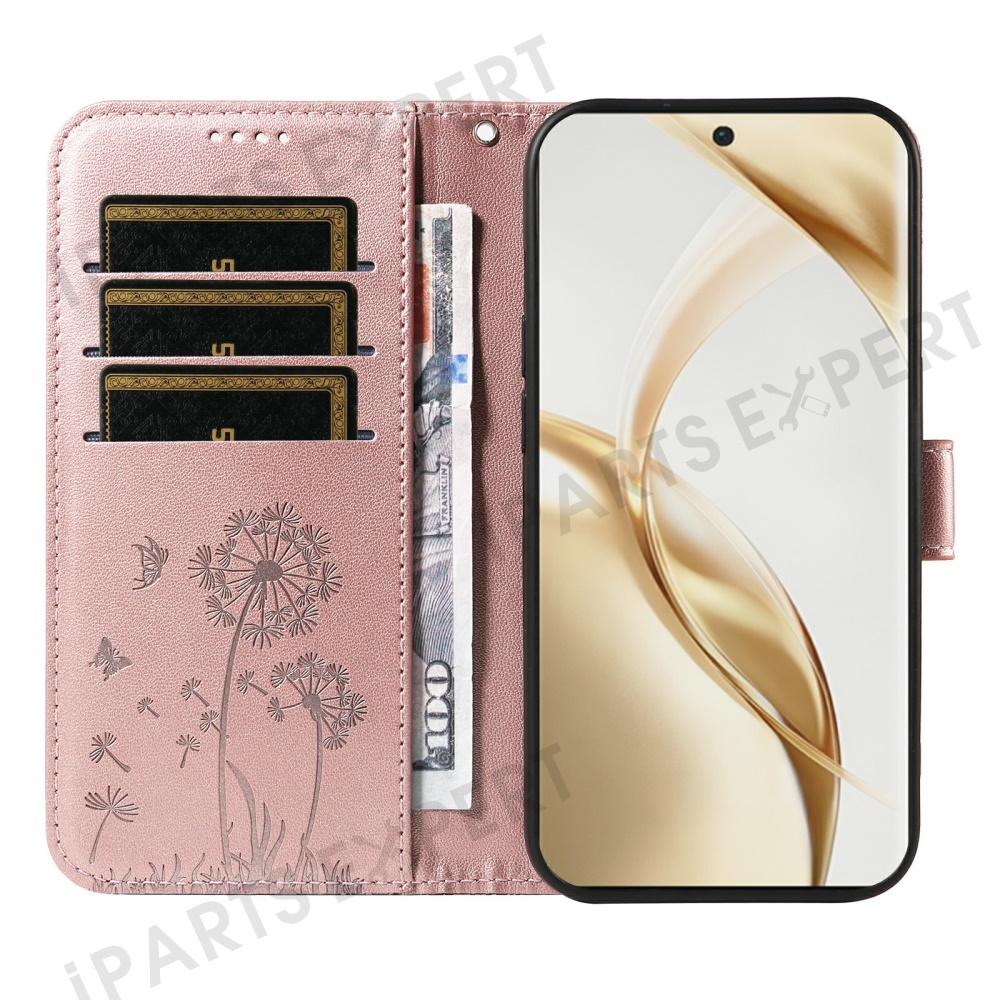For Honor 200 Pro 5G Leather Case Wallet Phone Cover Dandelion Imprint - Rose Gold