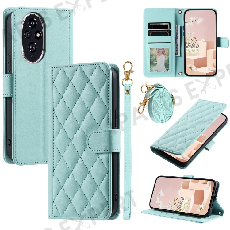 For Honor 200 Pro 5G Wallet Case Rhombus Grid PU Leather Phone Cover - Mint Green