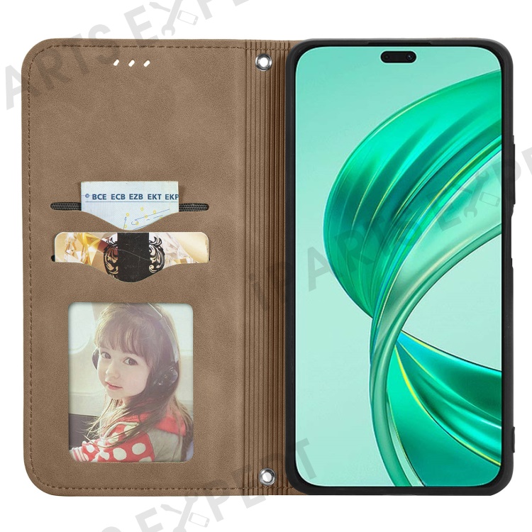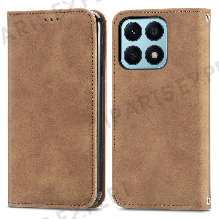 For Honor 200 Smart 5G / X7c 4G / Play 60 Plus 5G Case Skin Touch Feeling Leather Card Holder Phone Cover Magnetic Absorption - Brown