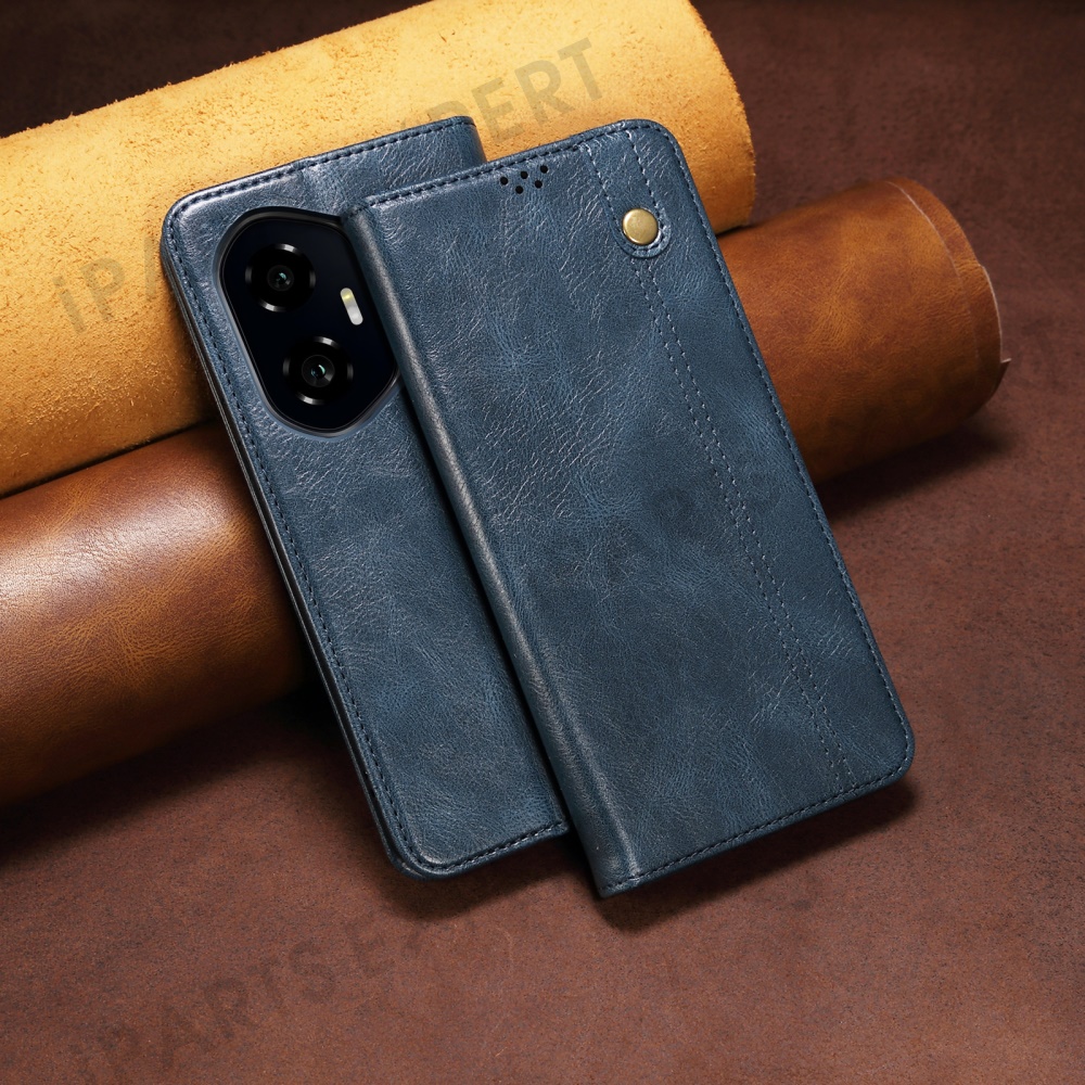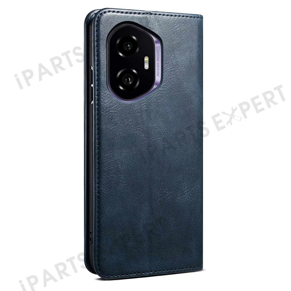 For Honor 300 Case Crazy Horse Texture Waxy Leather Wallet Stand Phone Cover - Blue