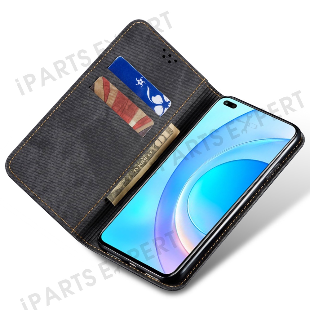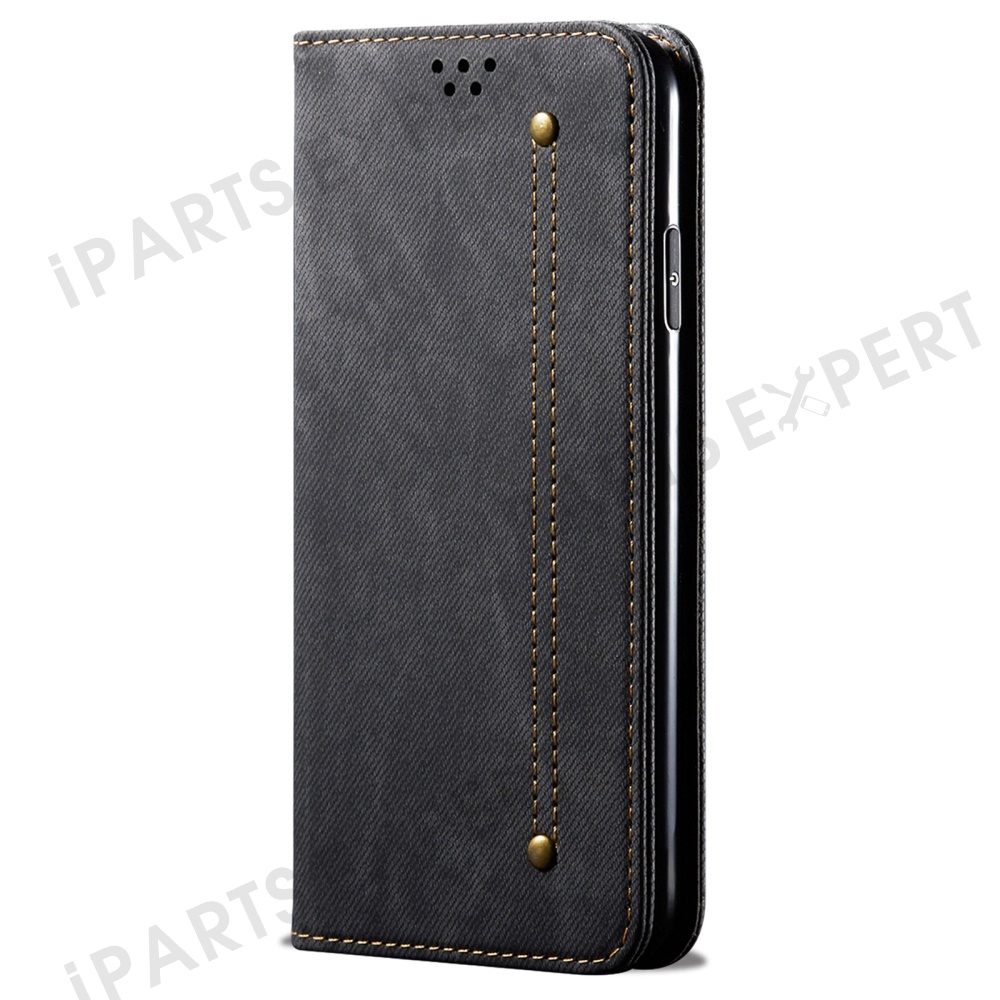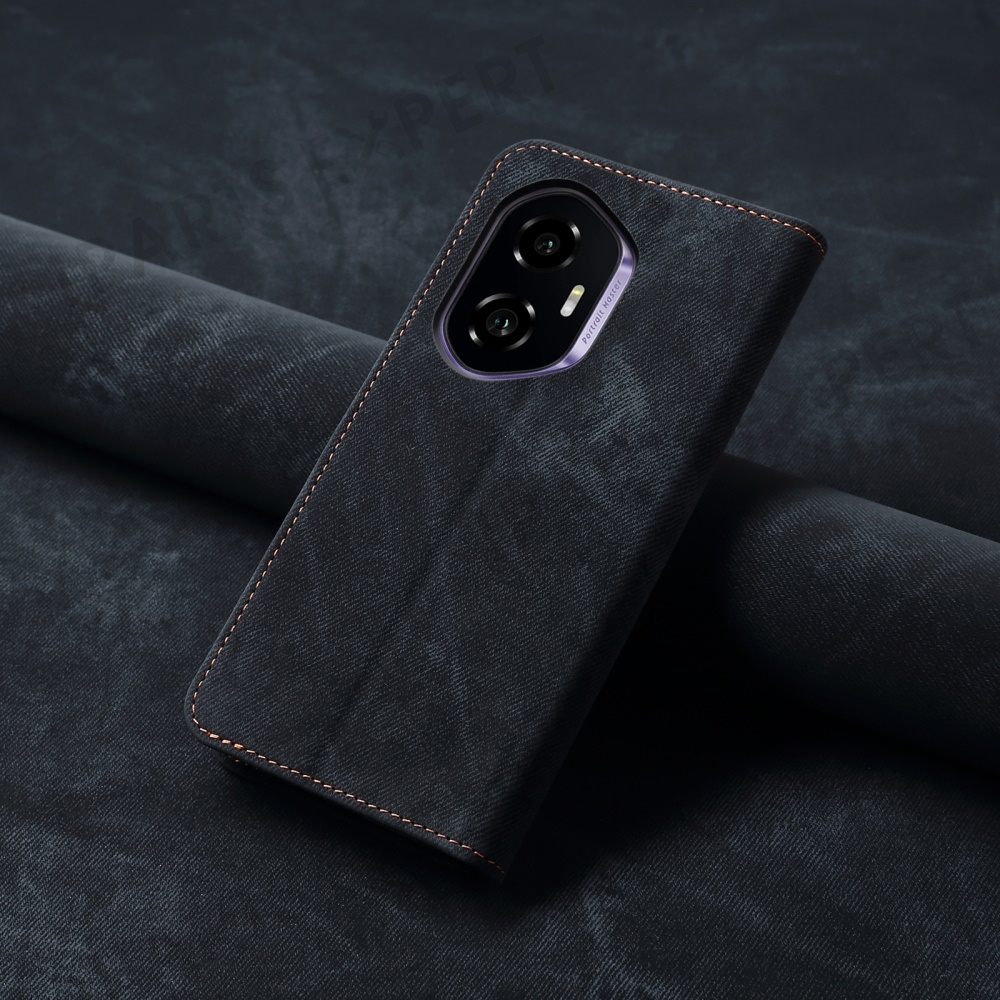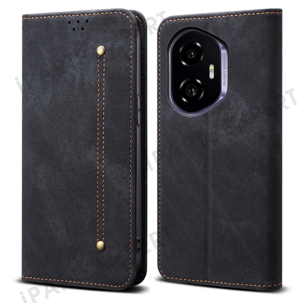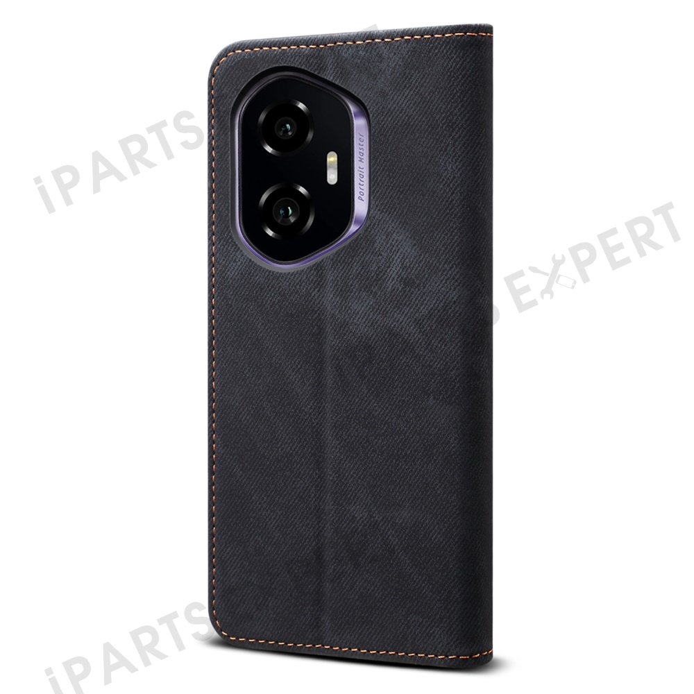 For Honor 300 Case Jeans Cloth Texture Anti-Scratch Leather Stand Phone Cover - Black