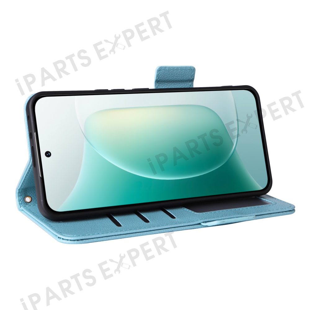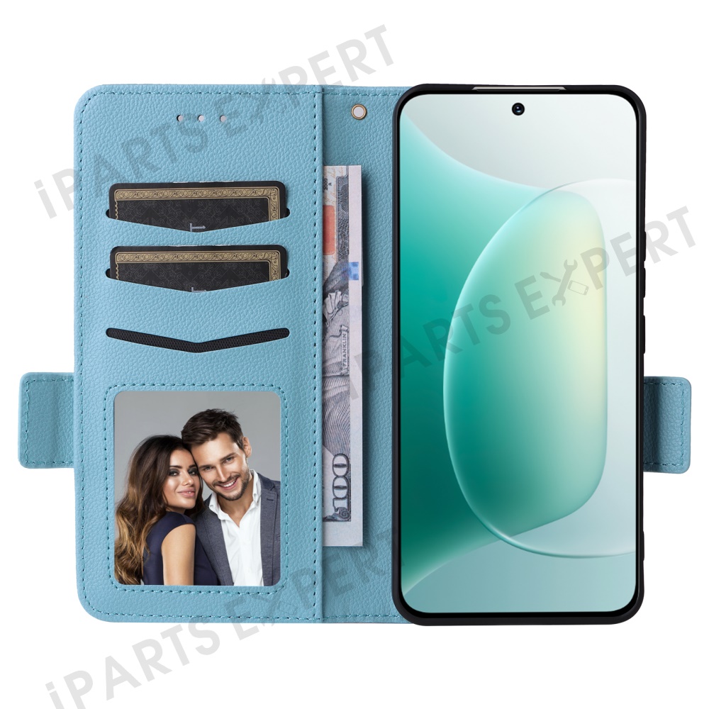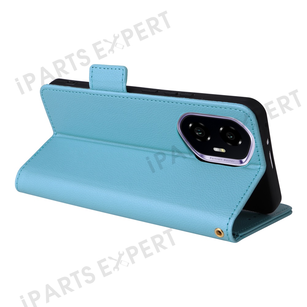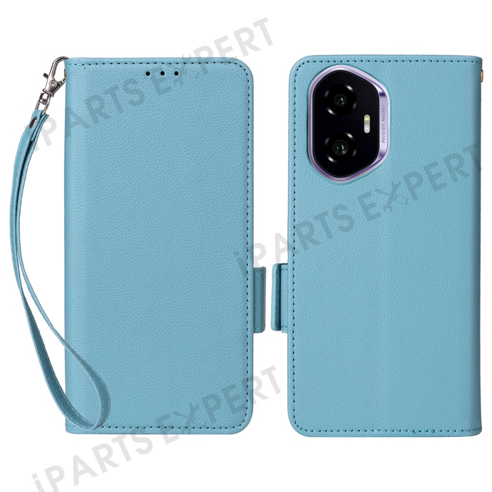 For Honor 300 Case with Wrist Strap Litchi Texture PU Leather Wallet Phone Cover - Baby Blue