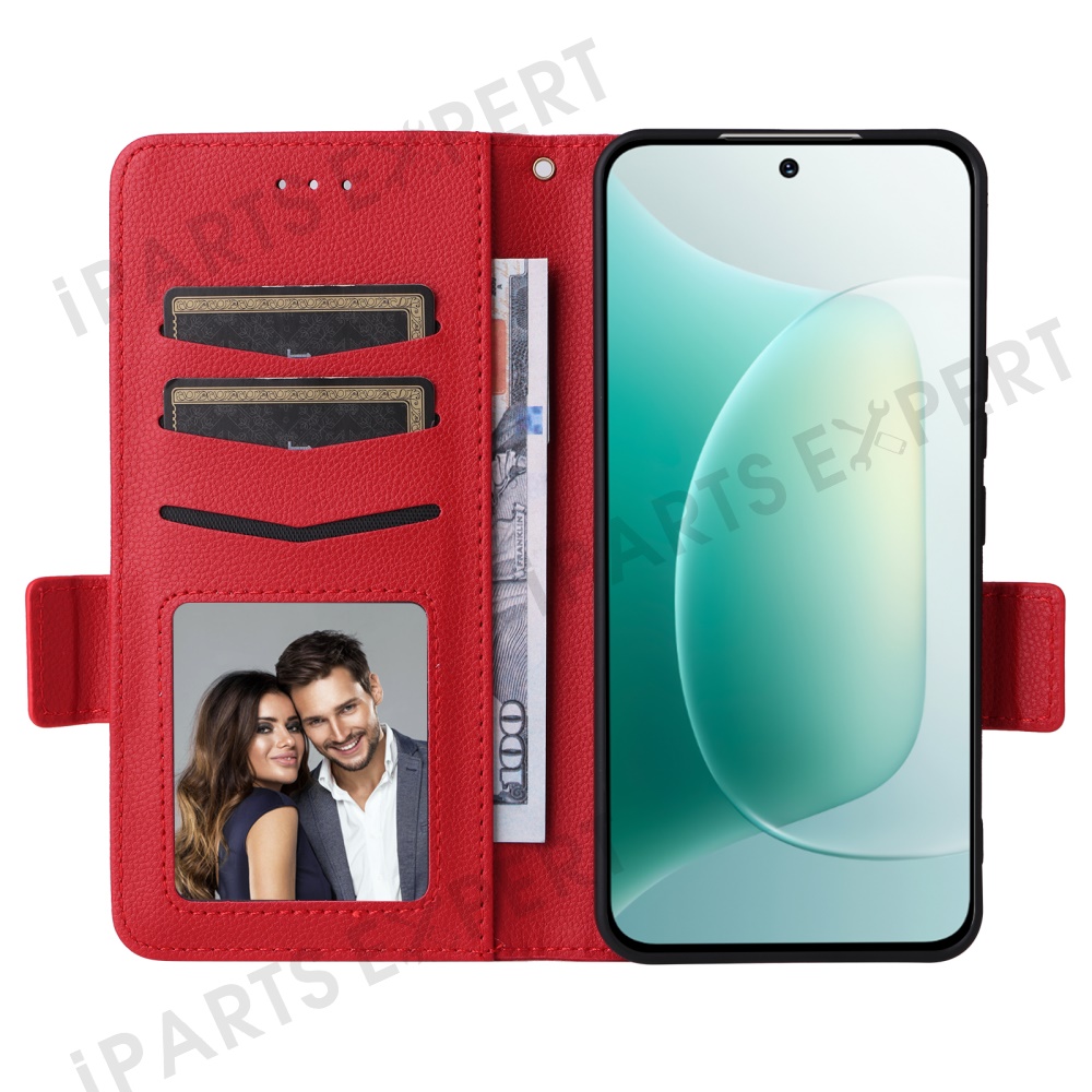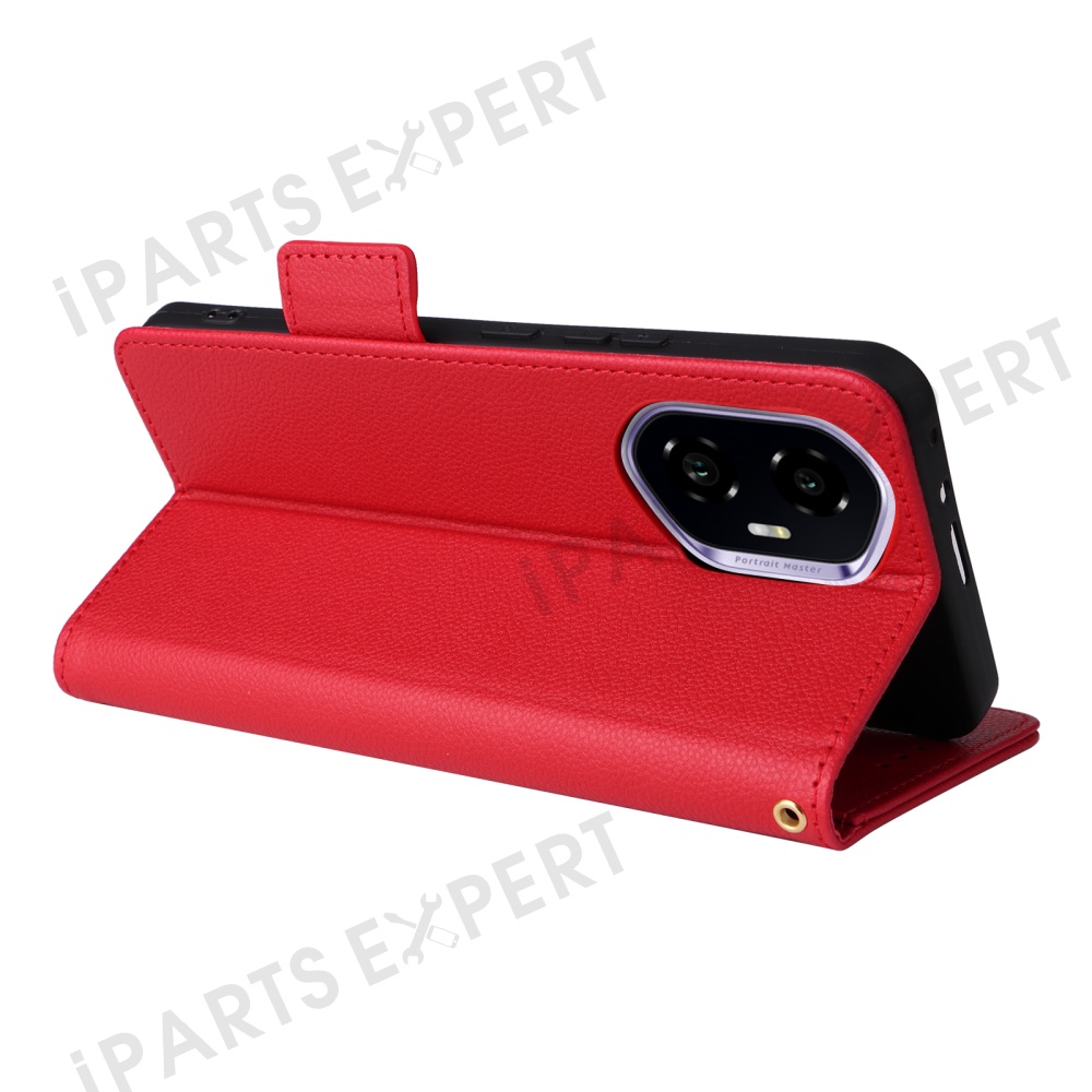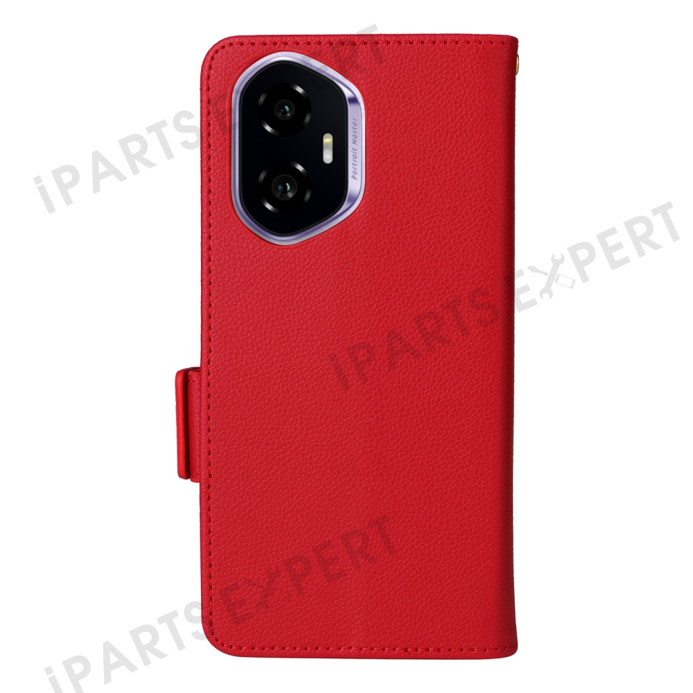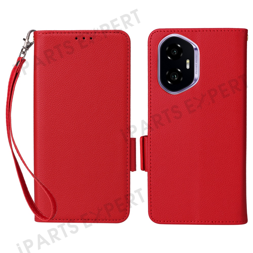 For Honor 300 Case with Wrist Strap Litchi Texture PU Leather Wallet Phone Cover - Red