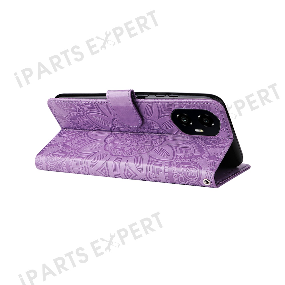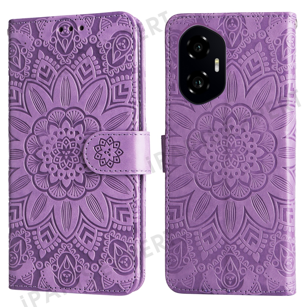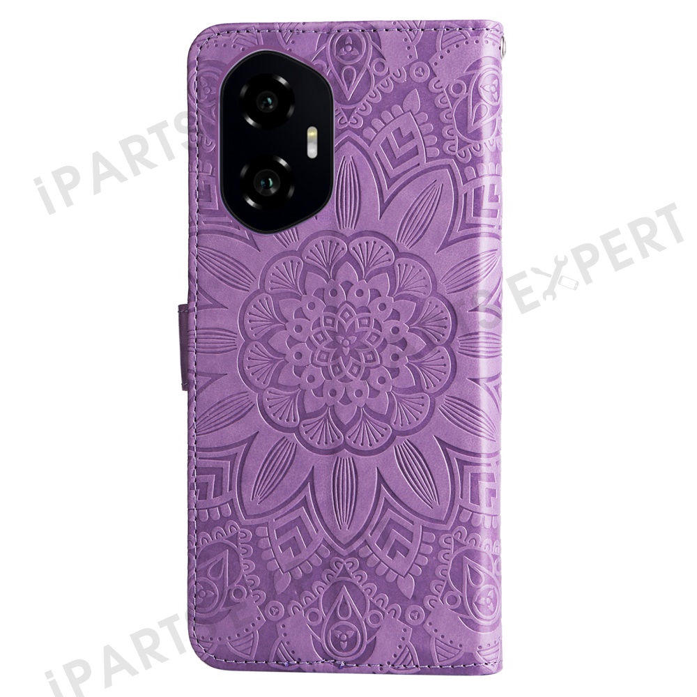 For Honor 300 Case Sunflower Imprint Leather Wallet Phone Cover - Purple
