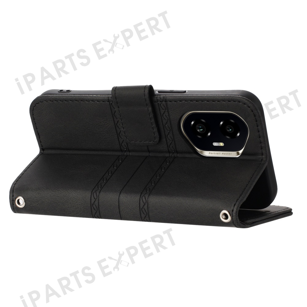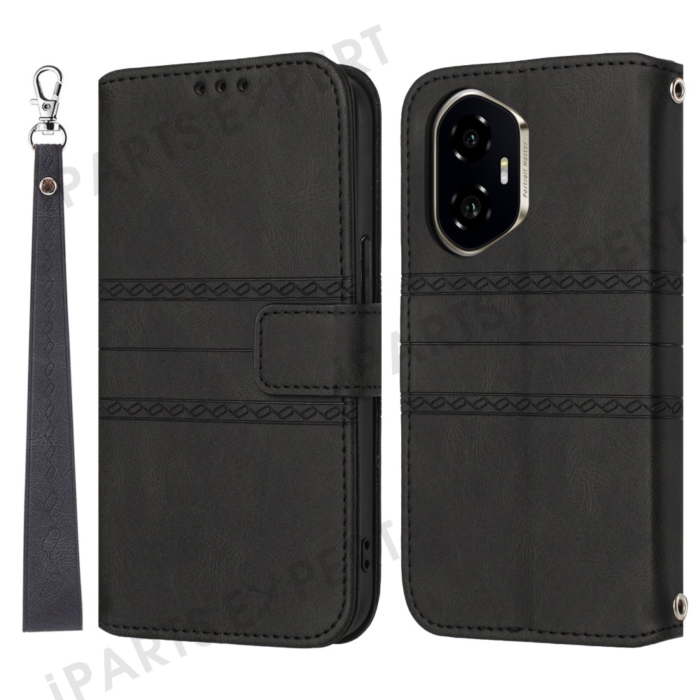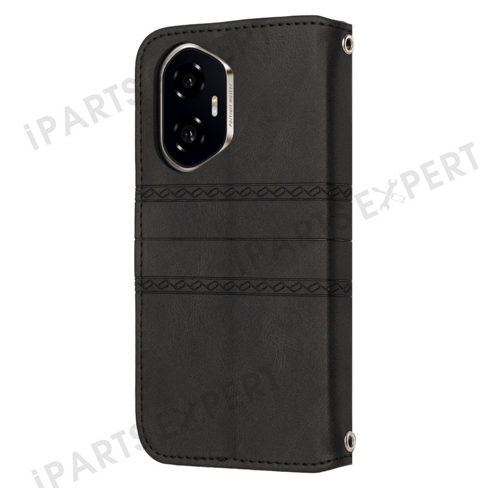 For Honor 300 Case Wallet Skin-Touch Leather Imprinted Phone Cover - Black