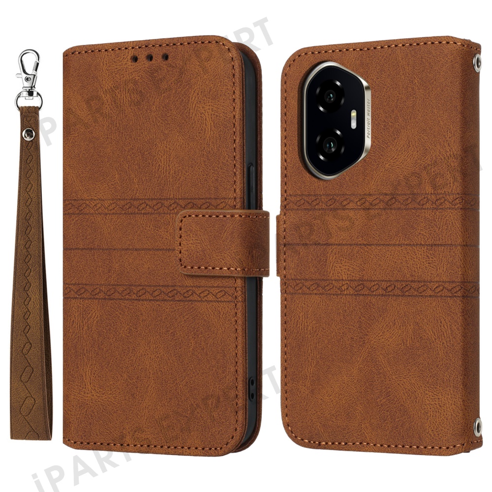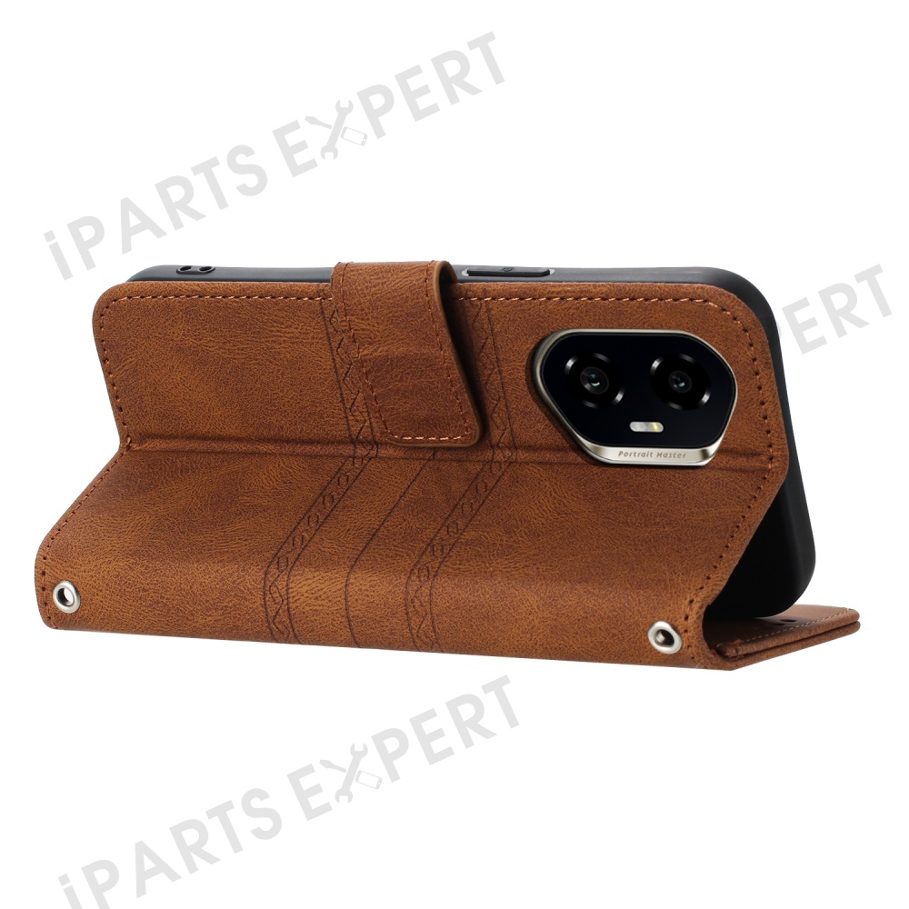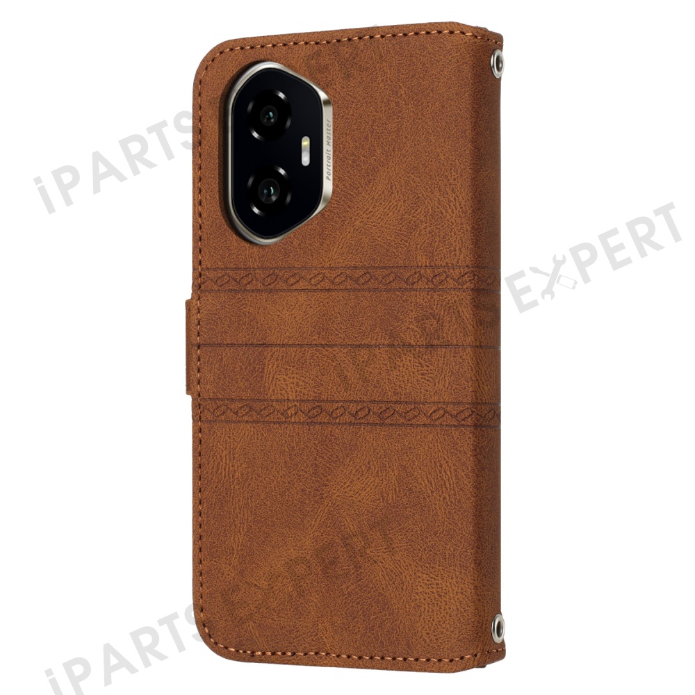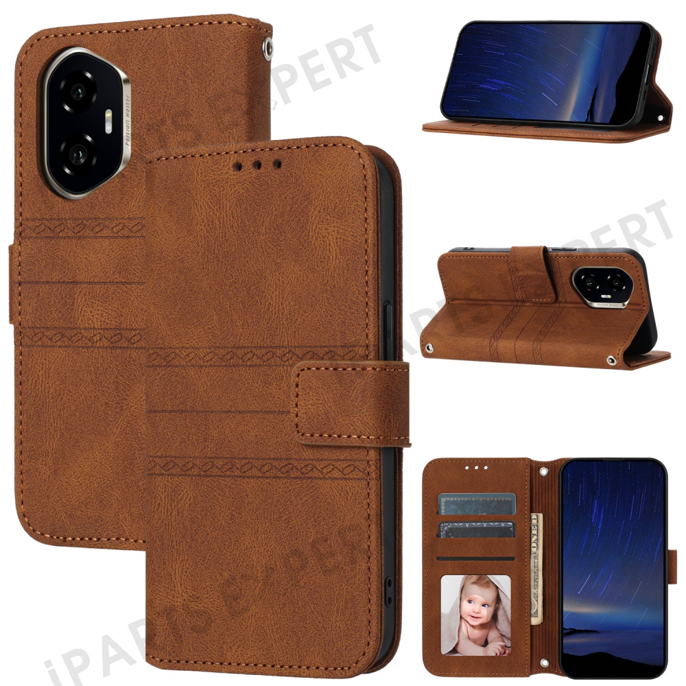 For Honor 300 Case Wallet Skin-Touch Leather Imprinted Phone Cover - Brown