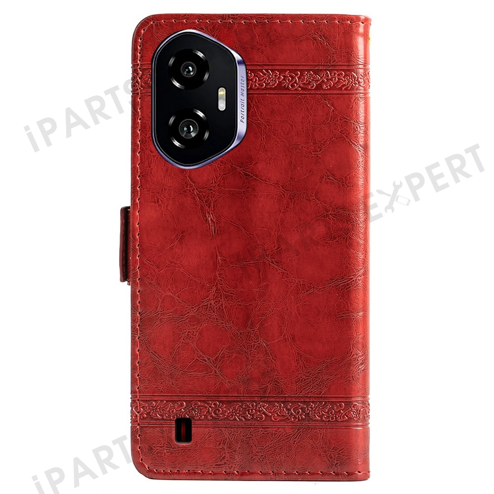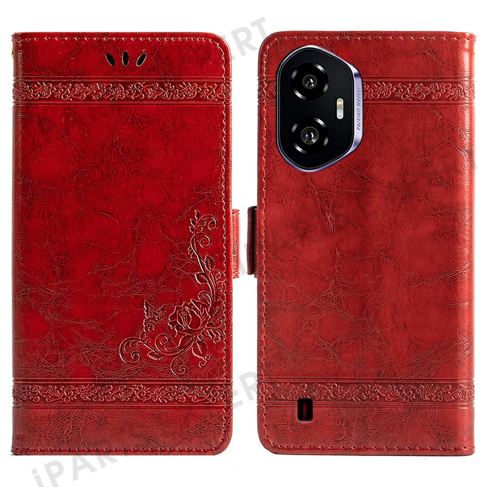 For Honor 300 Leather Case Flower Imprint Wallet Phone Cover with Side Buckle - Red