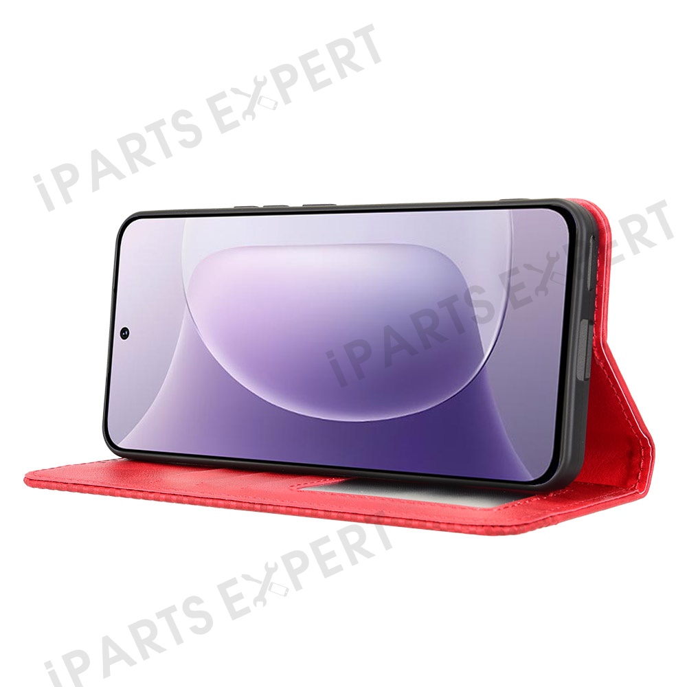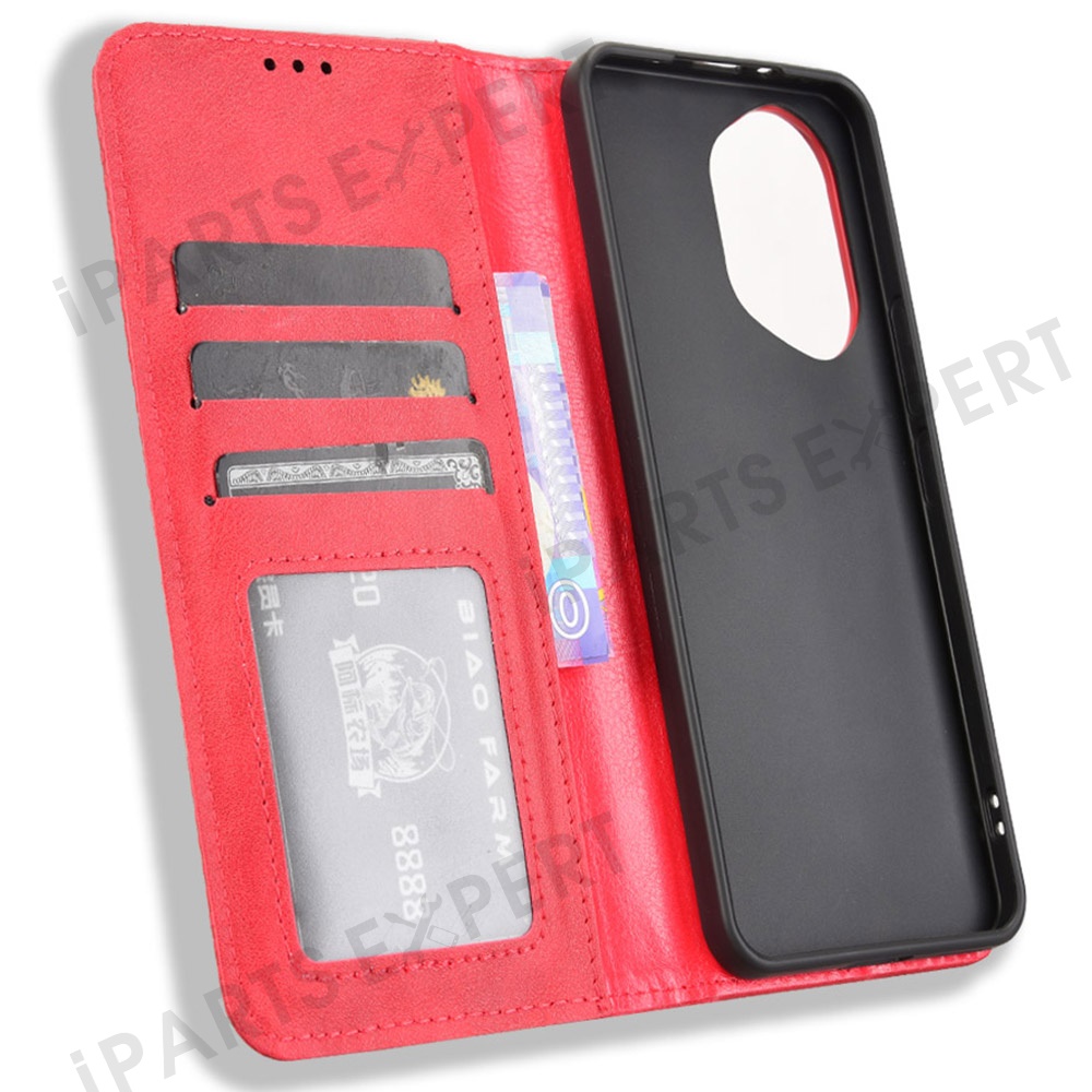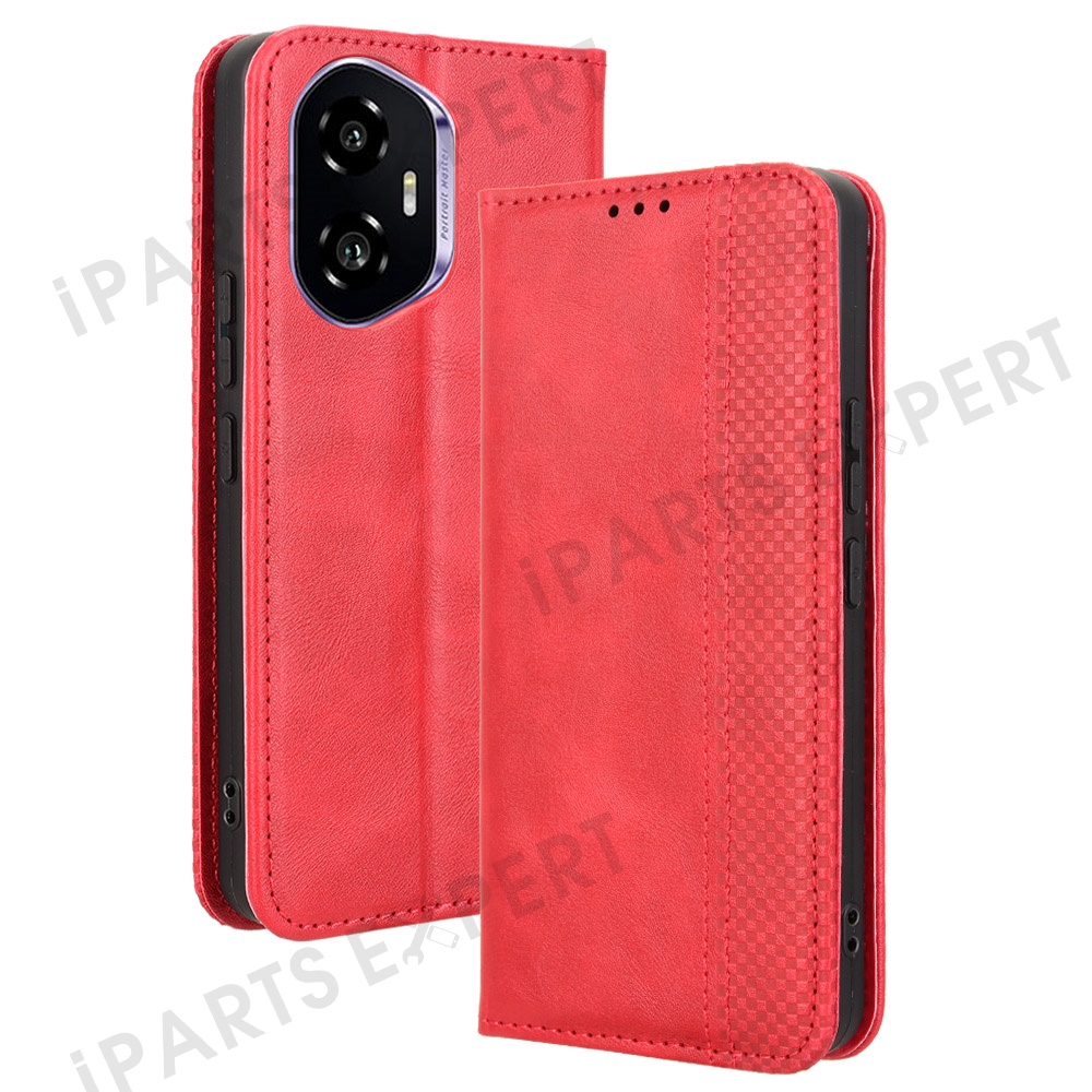 For Honor 300 Leather Case Wallet Stand Retro Texture Phone Cover - Red