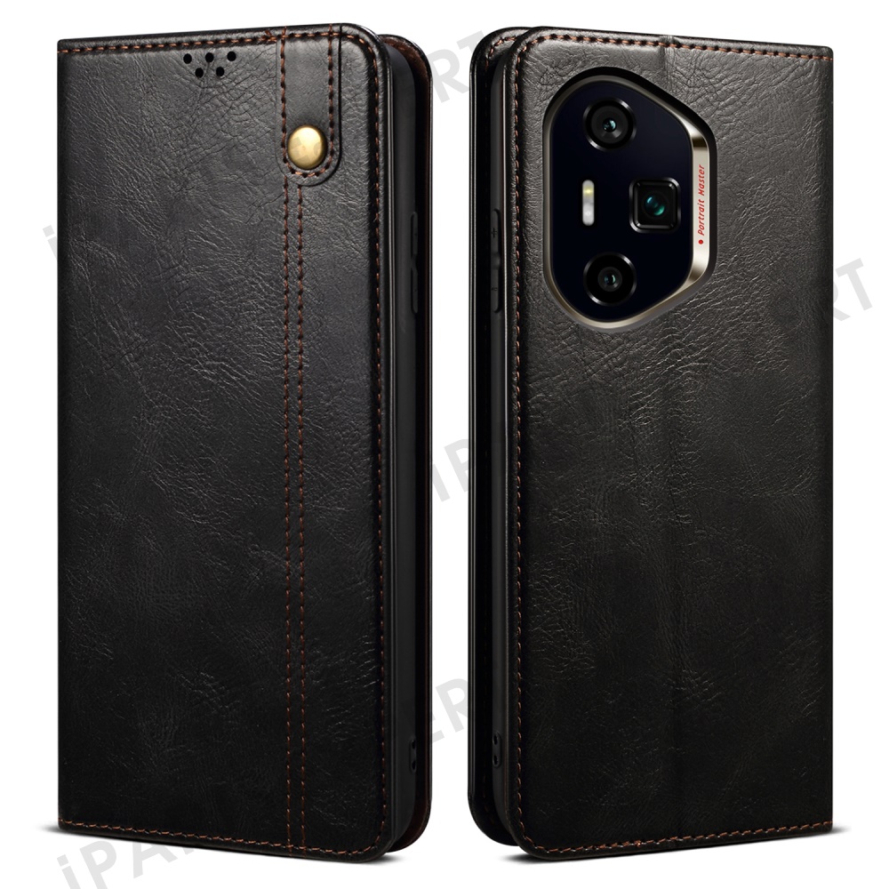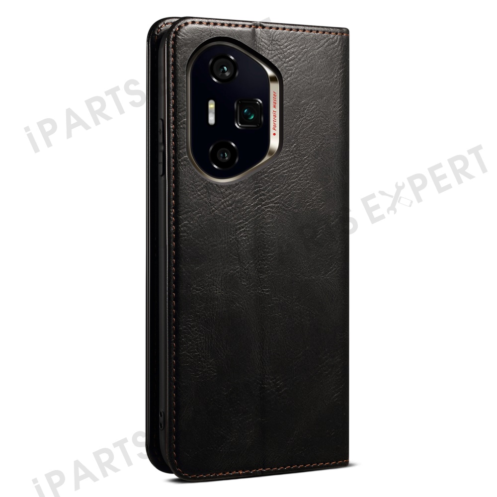 For Honor 300 Pro Case Crazy Horse Texture Waxy Leather Wallet Stand Phone Cover - Black