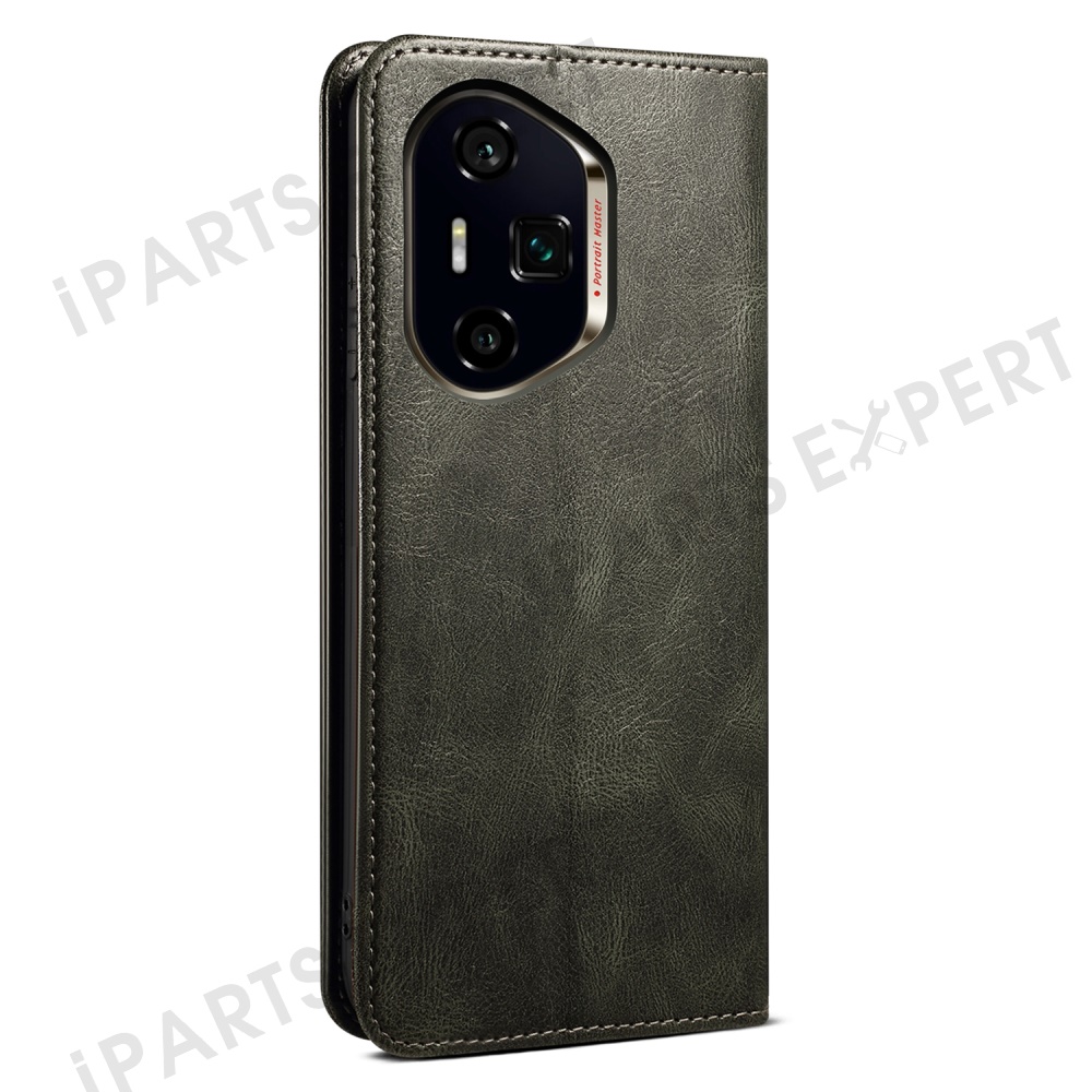 For Honor 300 Pro Case Crazy Horse Texture Waxy Leather Wallet Stand Phone Cover - Green