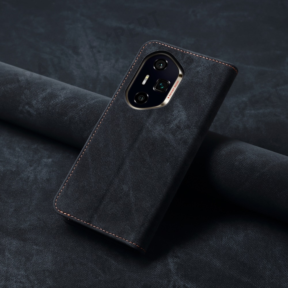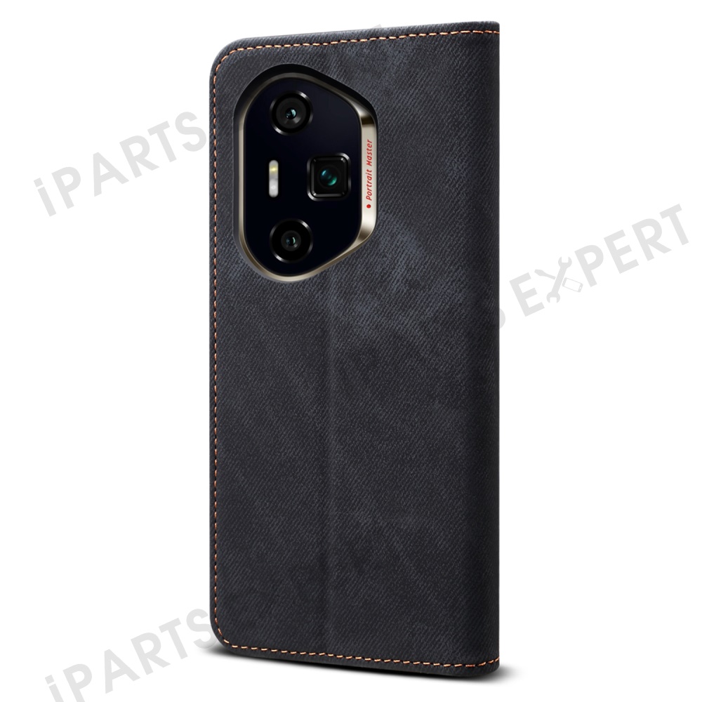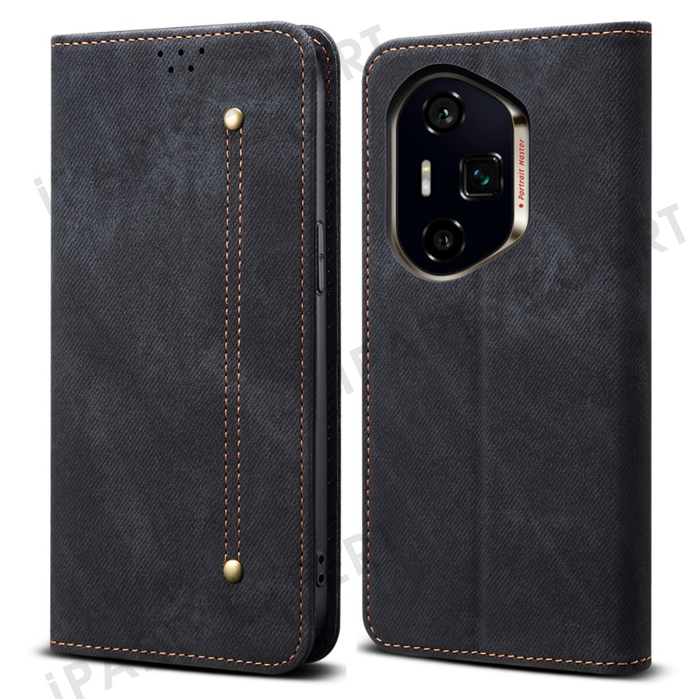 For Honor 300 Pro Case Jeans Cloth Texture Anti-Scratch Leather Stand Phone Cover - Black
