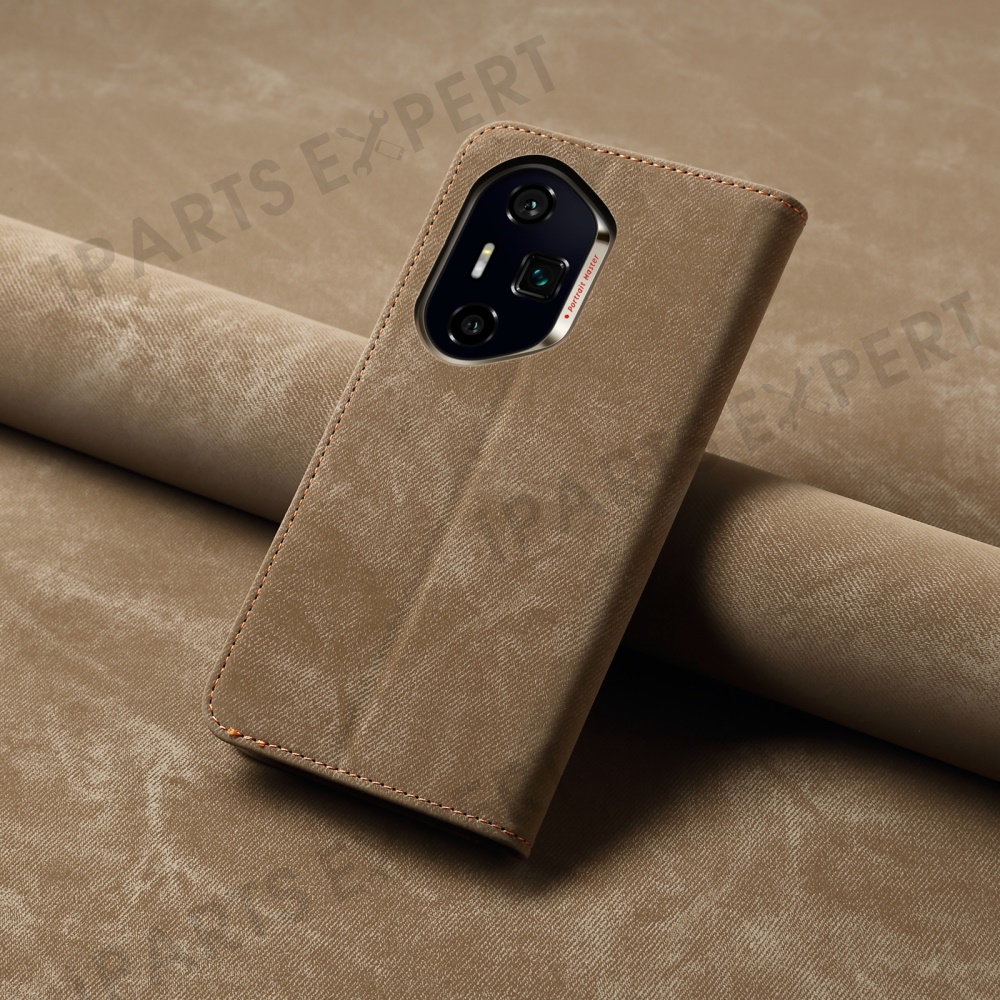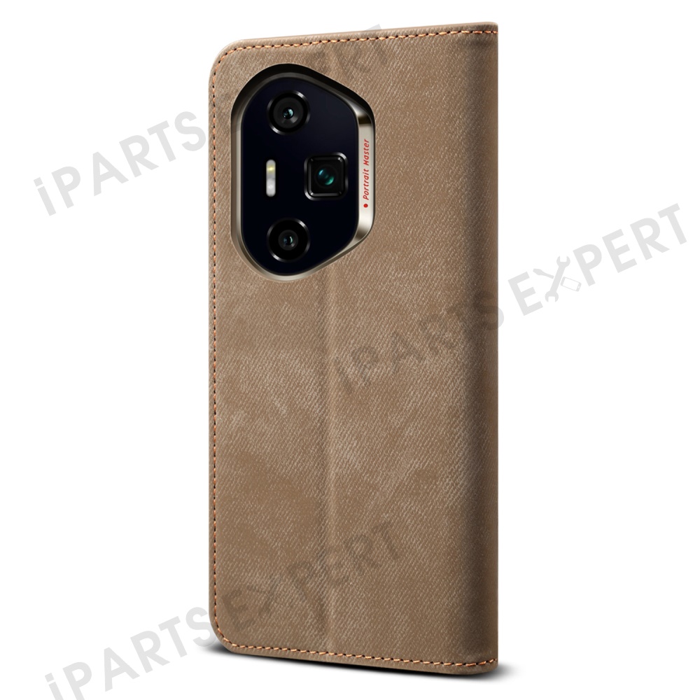 For Honor 300 Pro Case Jeans Cloth Texture Anti-Scratch Leather Stand Phone Cover - Khaki