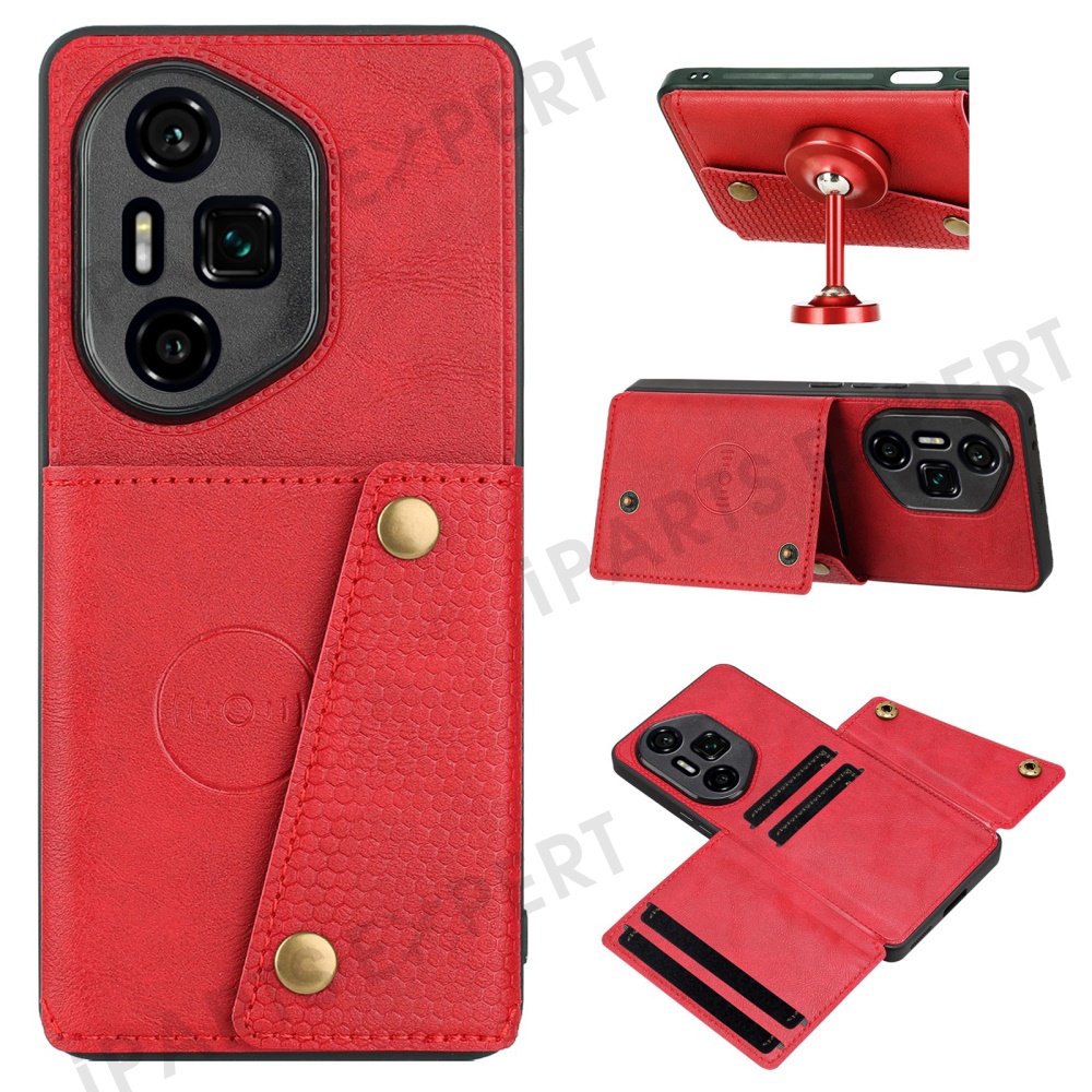 For Honor 300 Ultra Case with Card Slots Kickstand Leather + TPU Phone Cover - Red