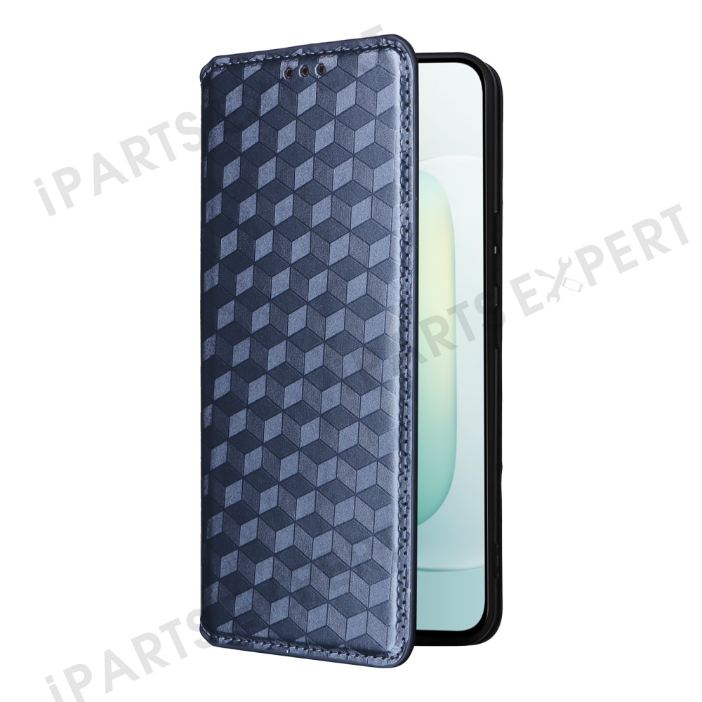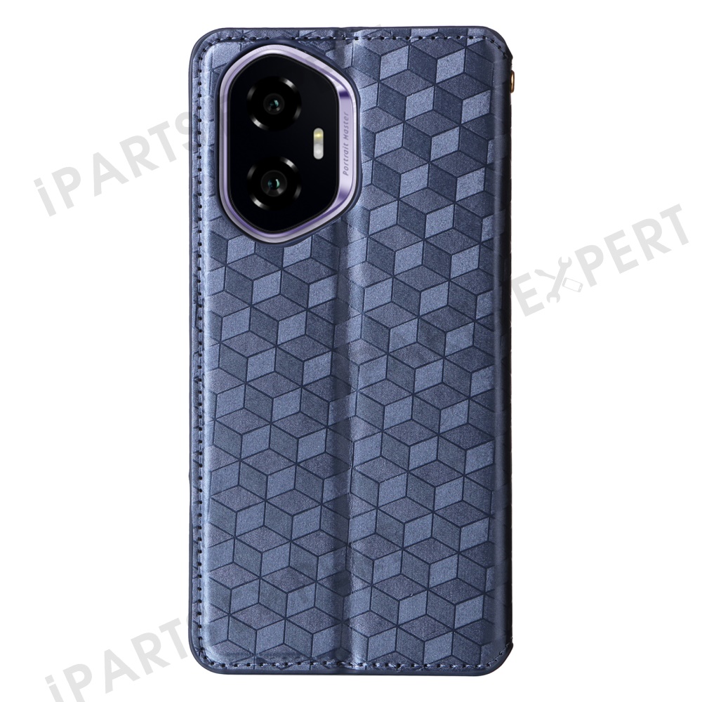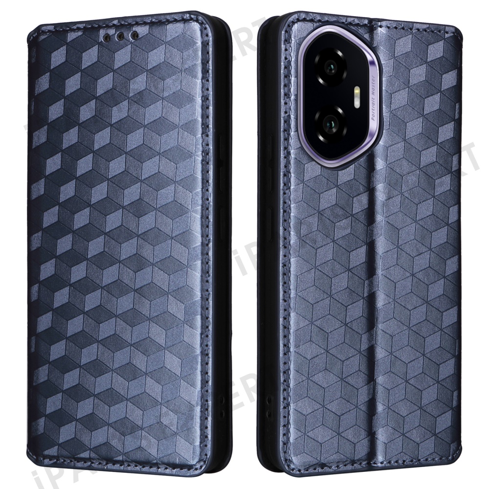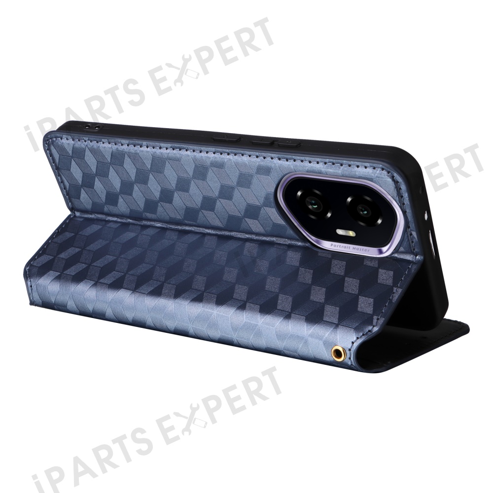 For Honor 300 Wallet Case Rhombus Imprinted Leather Phone Cover - Blue