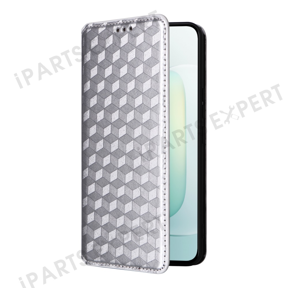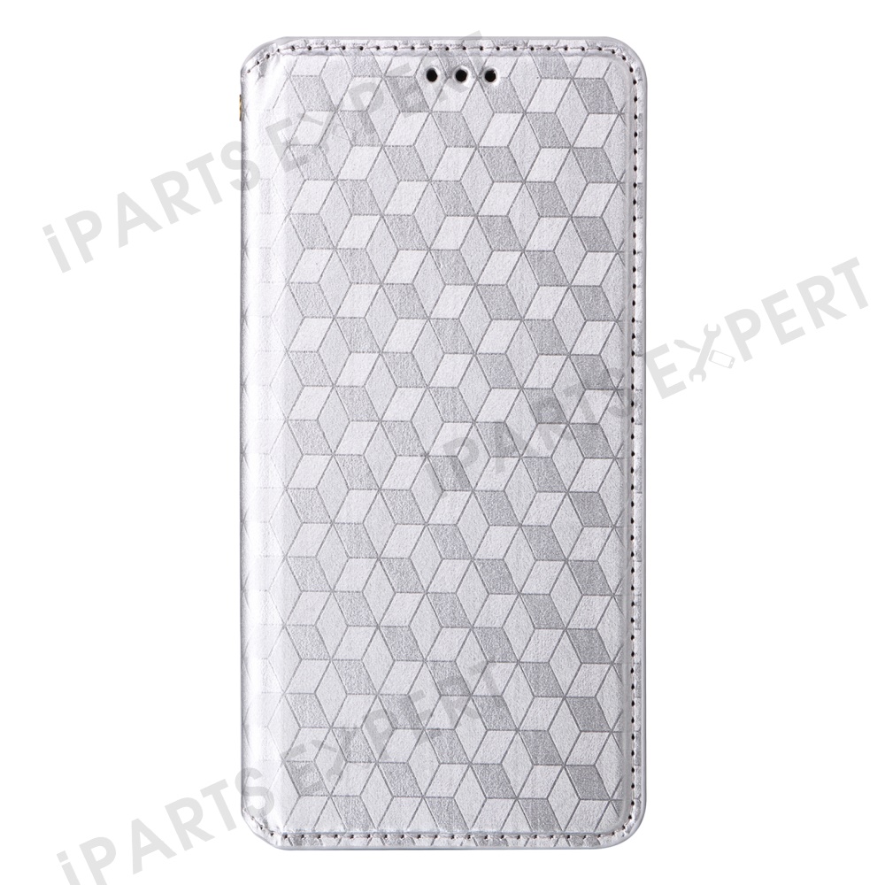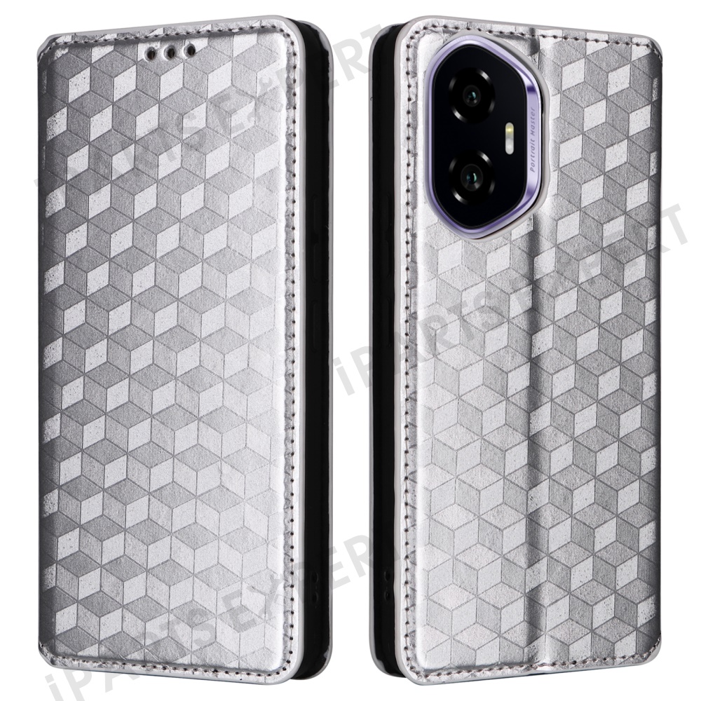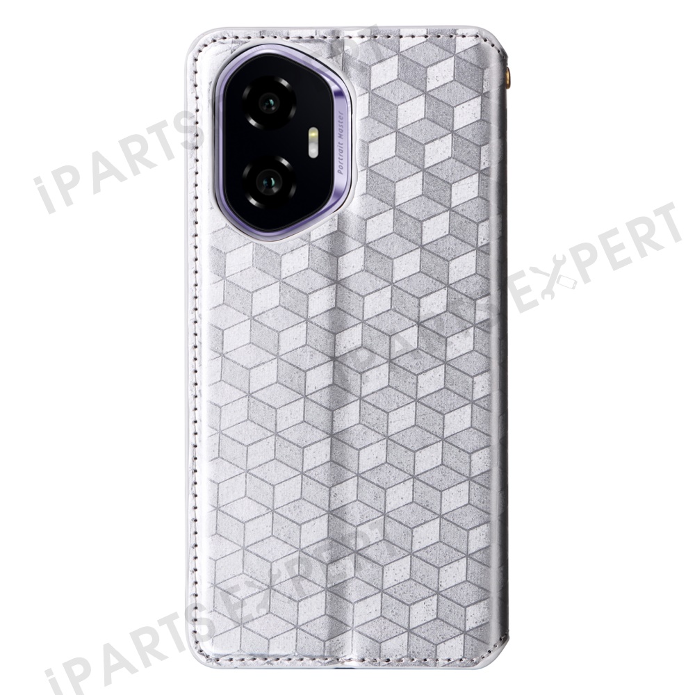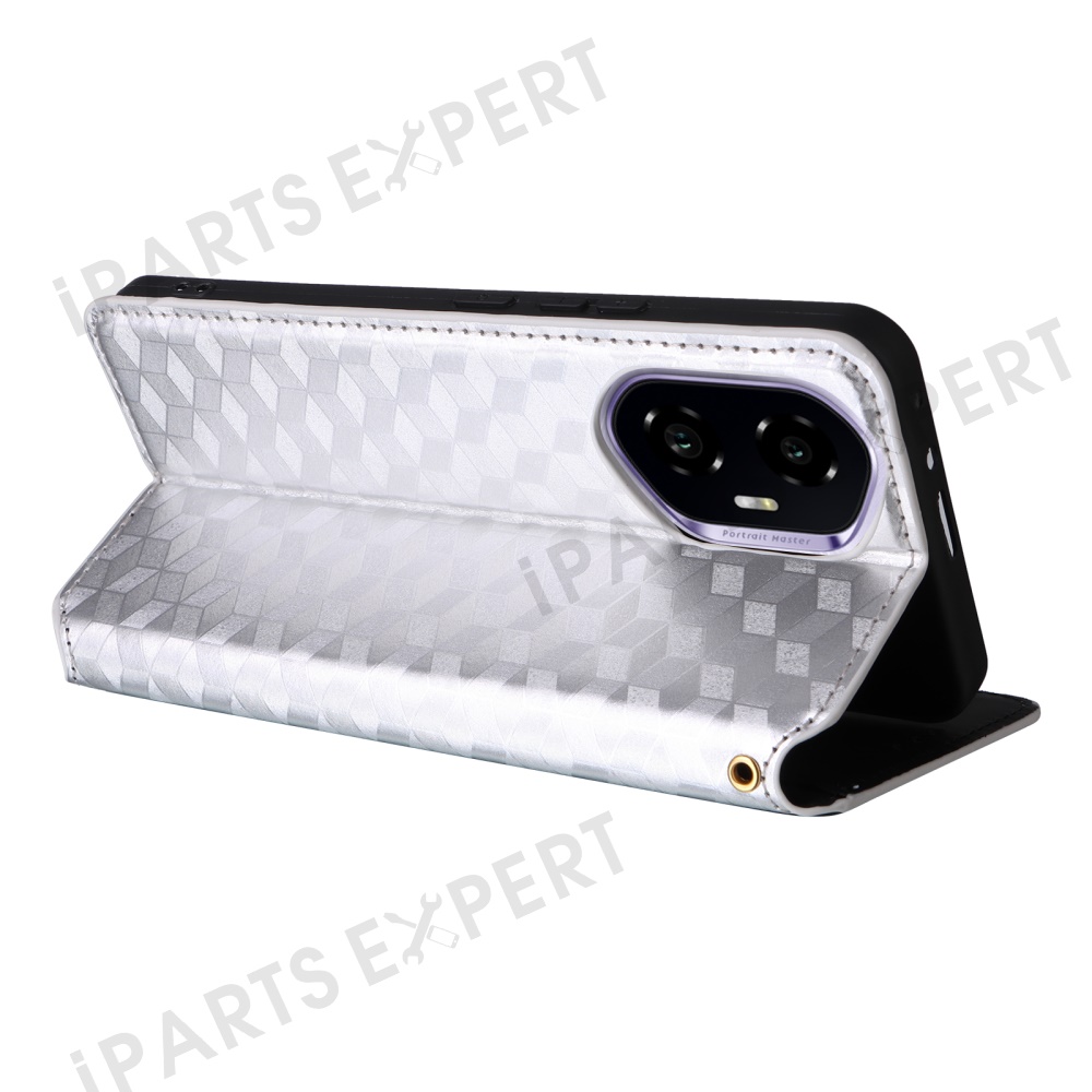 For Honor 300 Wallet Case Rhombus Imprinted Leather Phone Cover - Silver