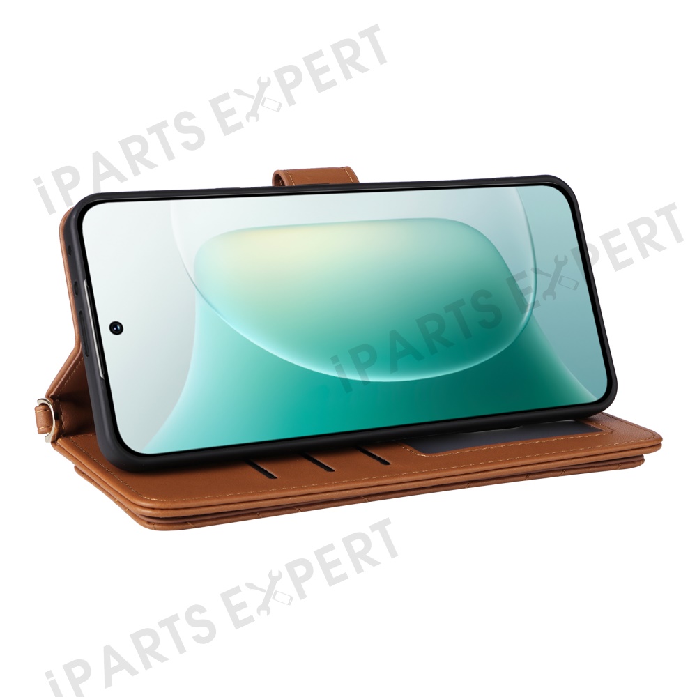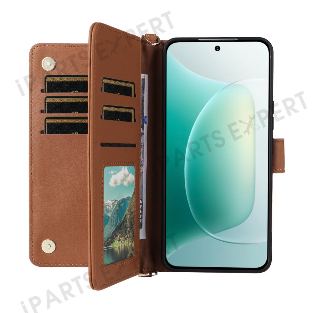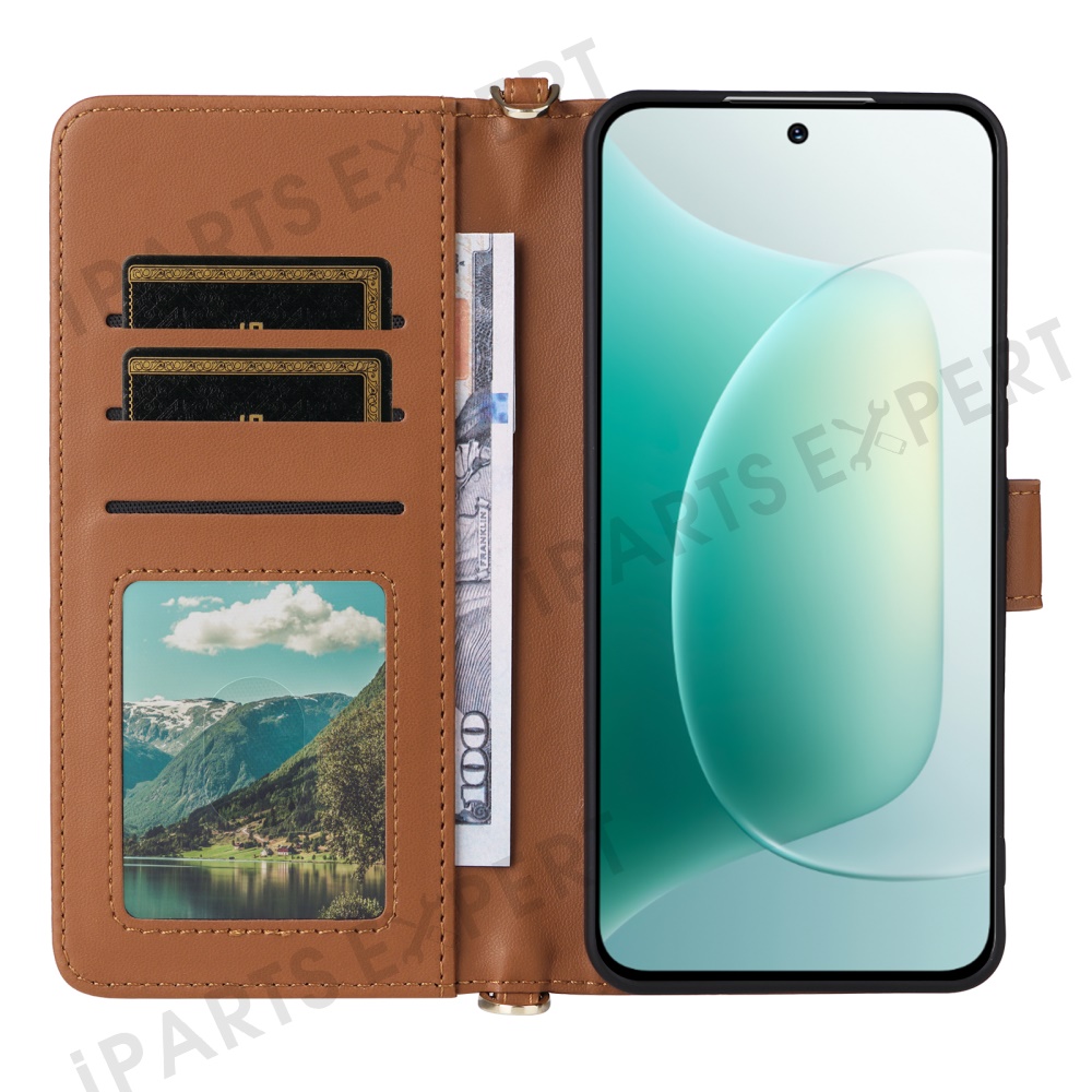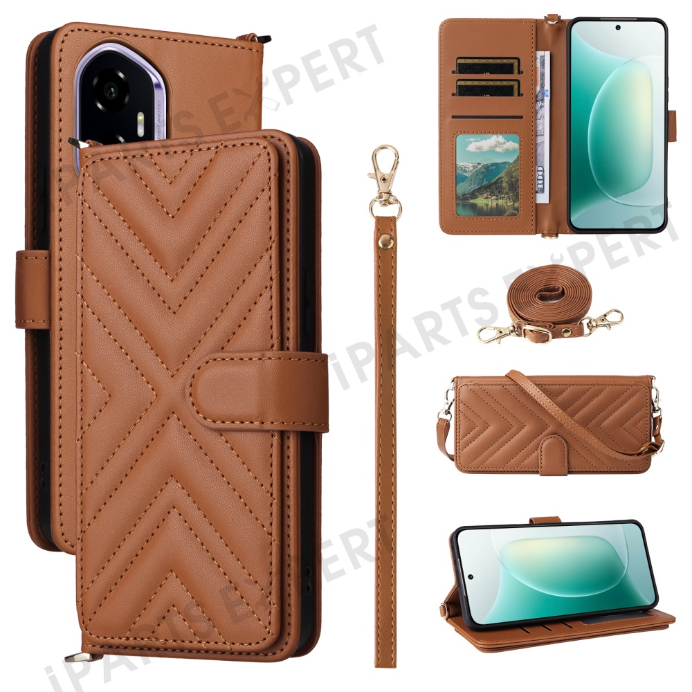 For Honor 300 Wallet Case with Shoulder / Wrist Strap Leather Phone Cover Stand - Brown
