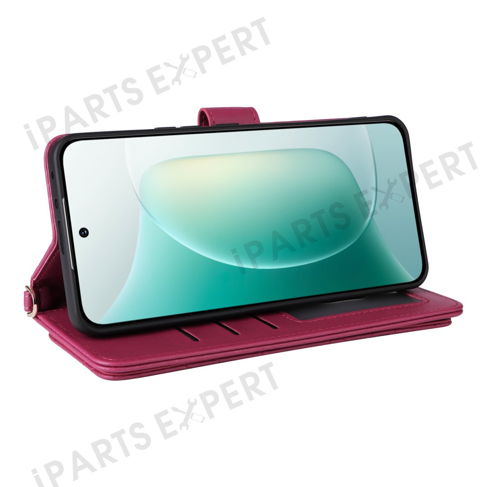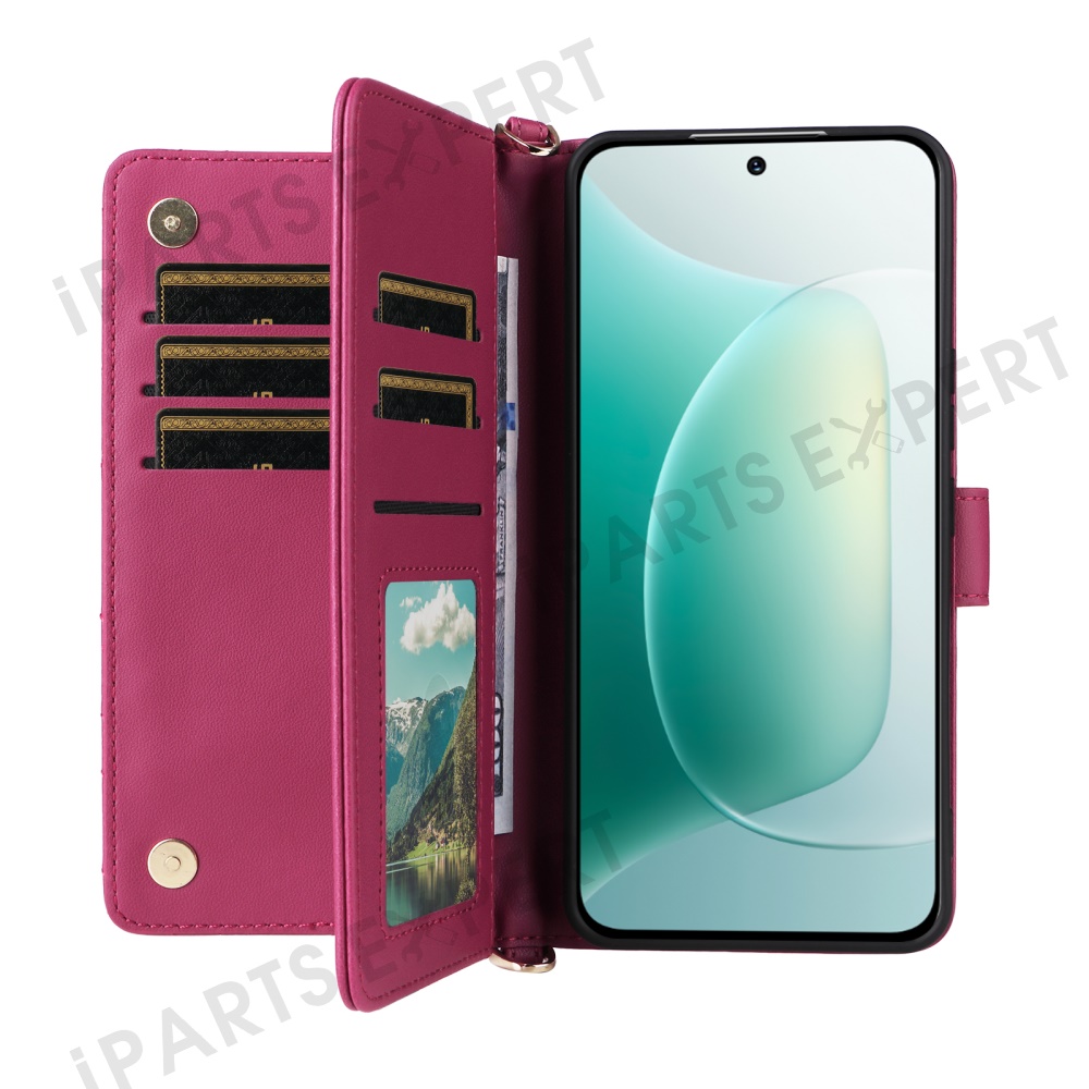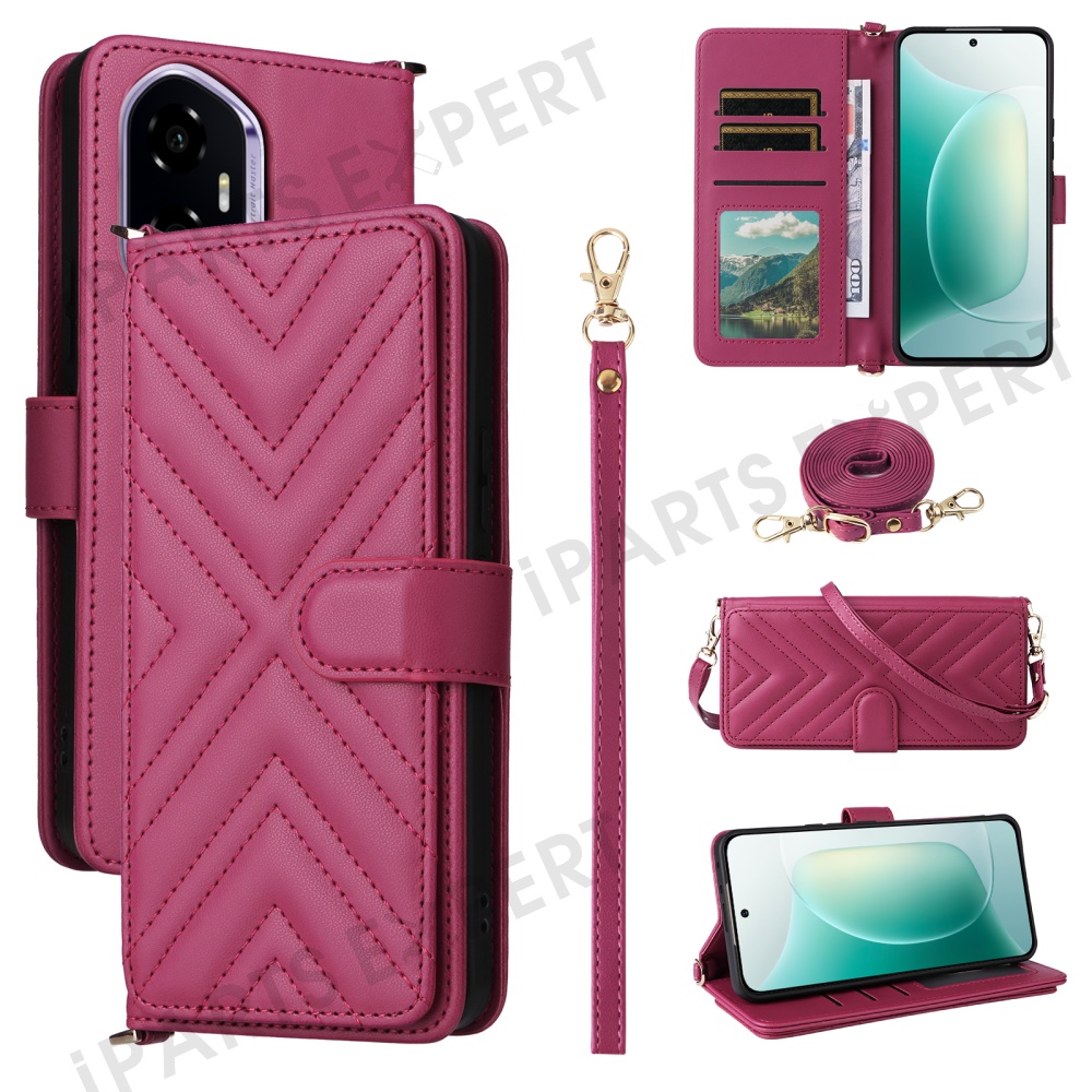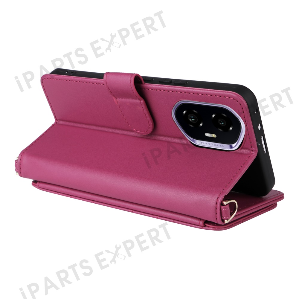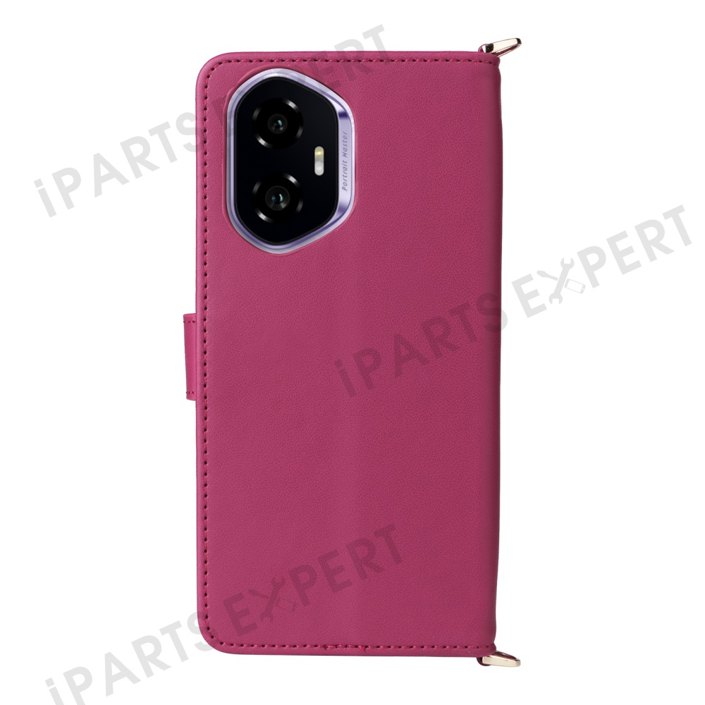 For Honor 300 Wallet Case with Shoulder / Wrist Strap Leather Phone Cover Stand - Rose