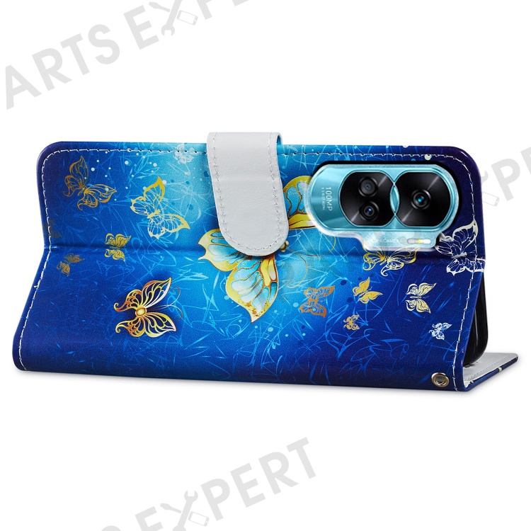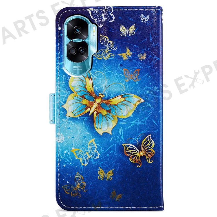 For Honor 90 Lite 5G / X50i 5G Case PU Leather Pattern Flip Wallet Phone Cover - Golden Butterfly