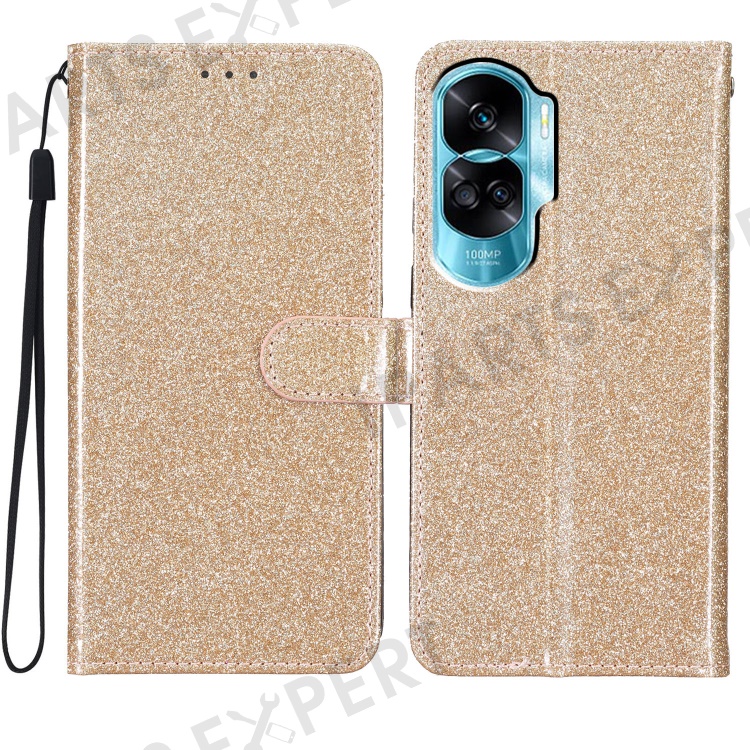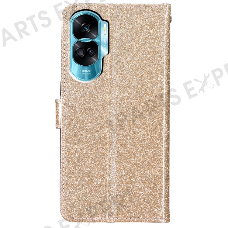 For Honor 90 Lite 5G / X50i 5G Case Stand Glittery PU Leather Protective Phone Cover with Wallet - Gold