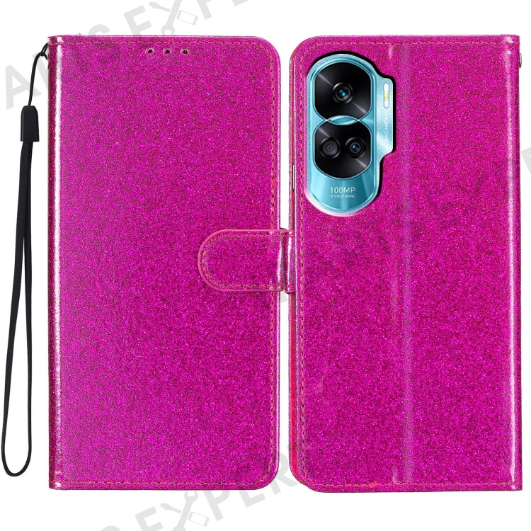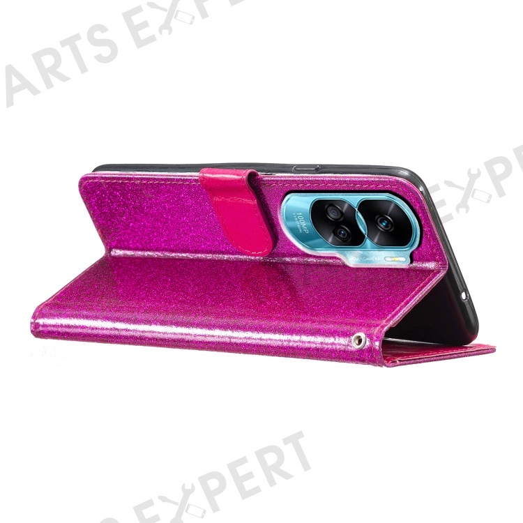 For Honor 90 Lite 5G / X50i 5G Case Stand Glittery PU Leather Protective Phone Cover with Wallet - Rose