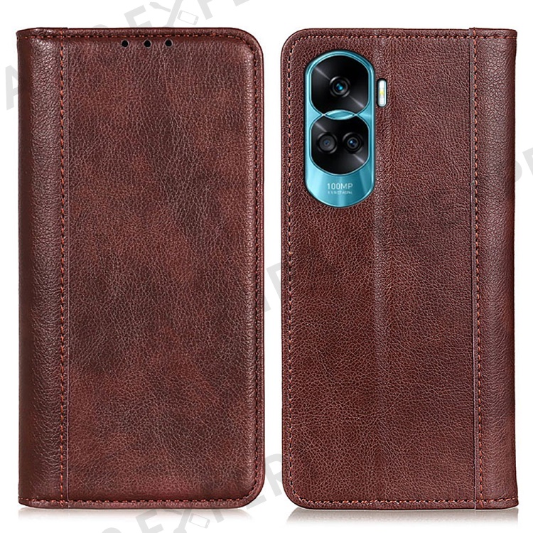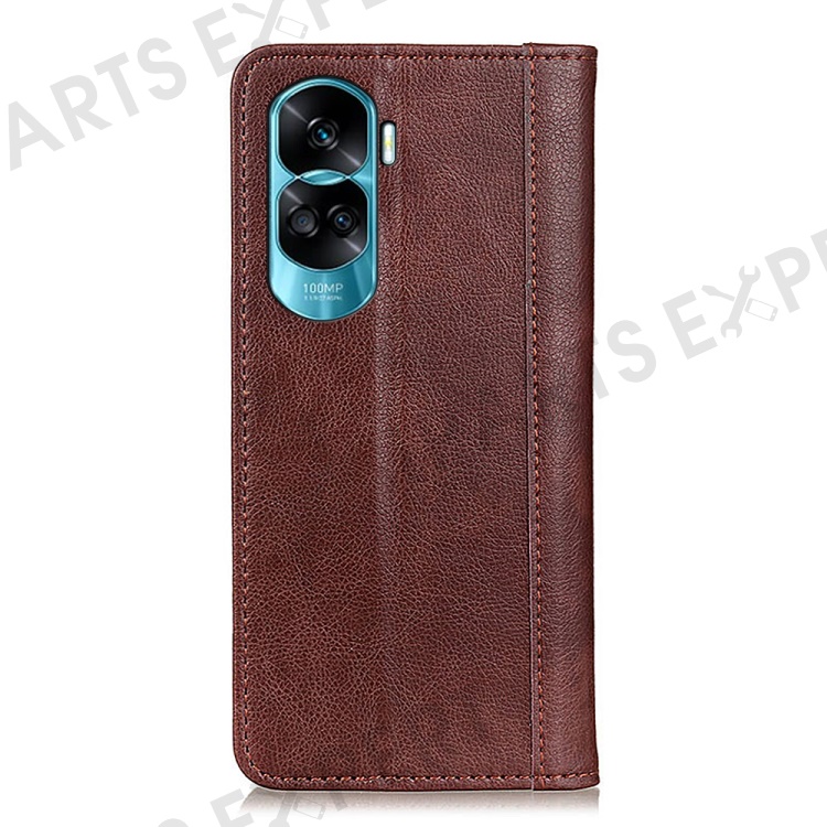 For Honor 90 Lite 5G / X50i 5G Litchi Texture Split Leather Phone Case Wallet Stand Phone Cover - Brown