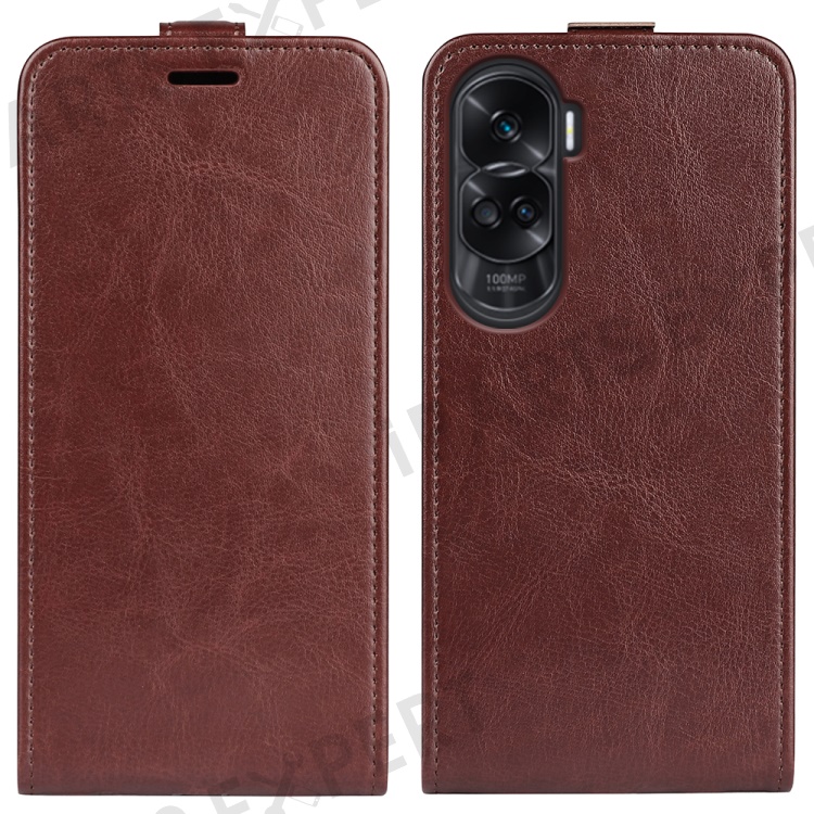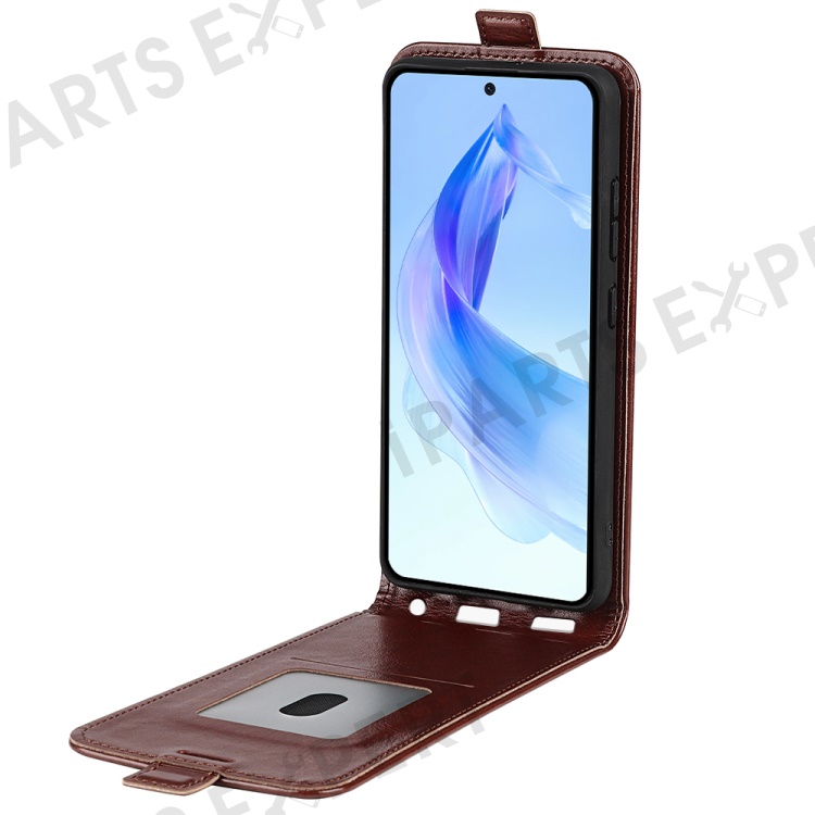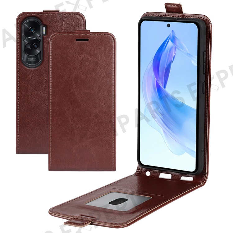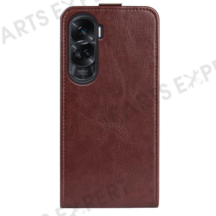 For Honor 90 Lite 5G / X50i 5G PU Leather Phone Case Vertical Flip Protective Phone Cover with Card Slot - Brown