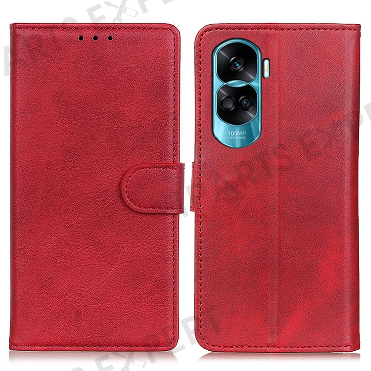 For Honor 90 Lite 5G / X50i Anti-Scratch PU Leather Phone Case Cowhide Texture Stand Wallet Shell Cover - Red