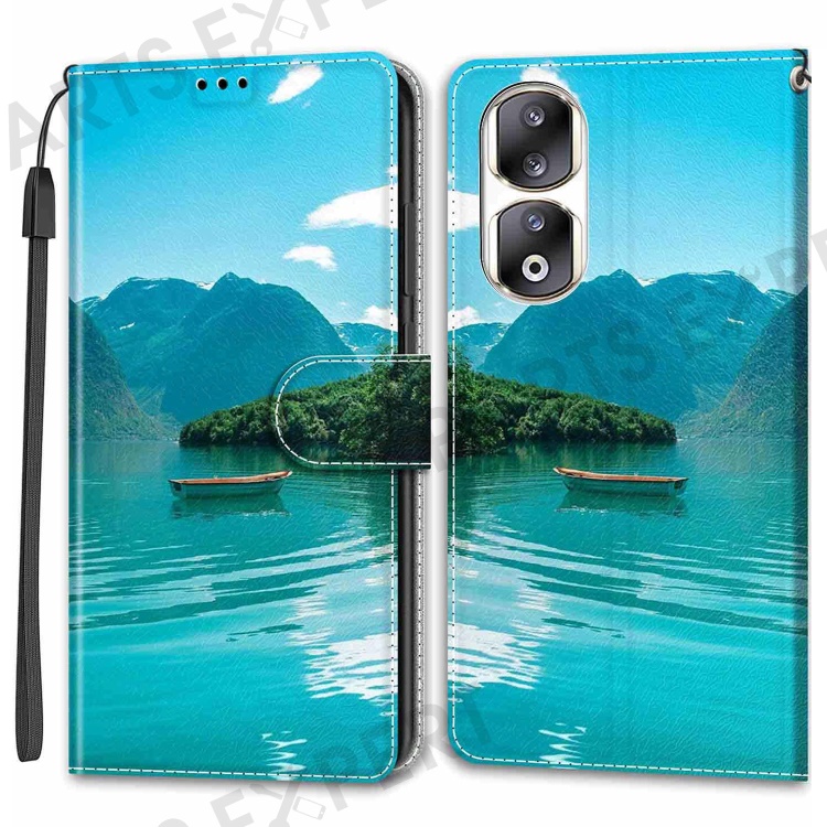 For Honor 90 Pro Case PU Leather Pattern Printing Stand Cover - Boat