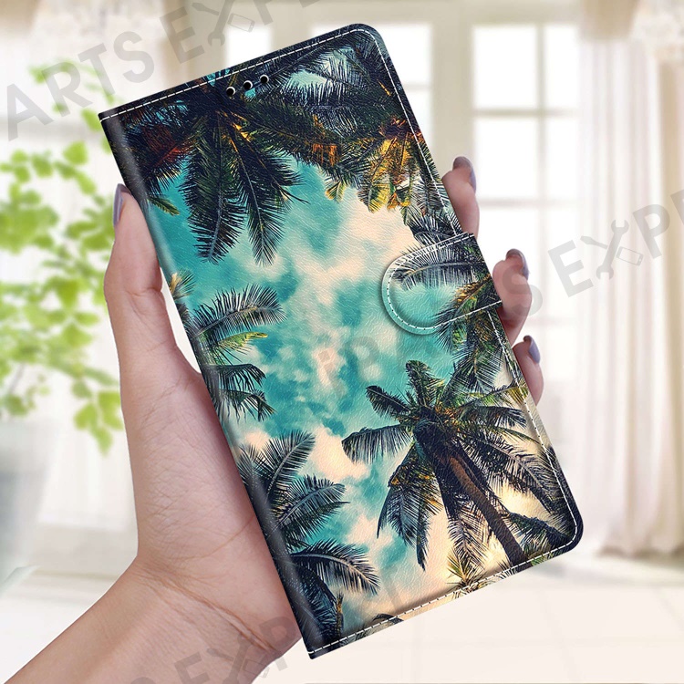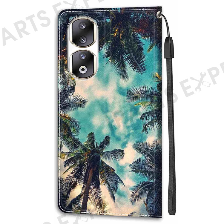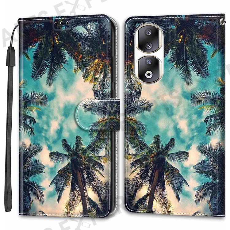 For Honor 90 Pro Case PU Leather Pattern Printing Stand Cover - Coconut Tree