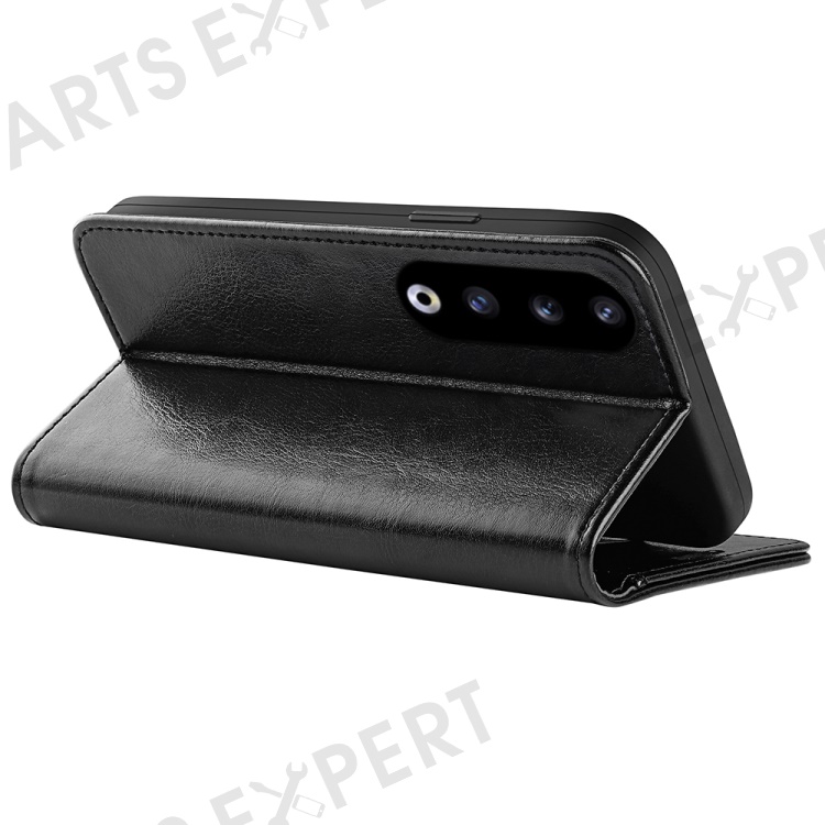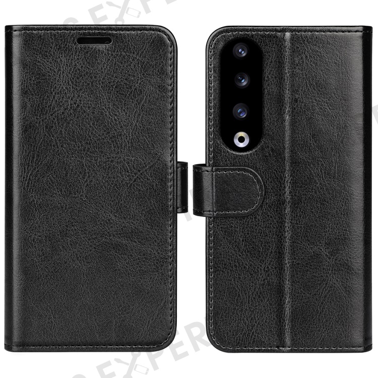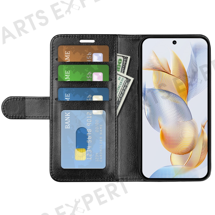 For Honor 90 Pro Crazy Horse Texture Phone Wallet Case PU Leather Anti-scratch Stand Cover - Black