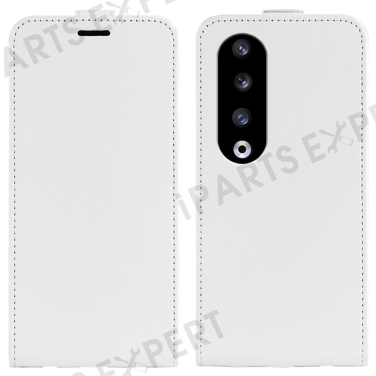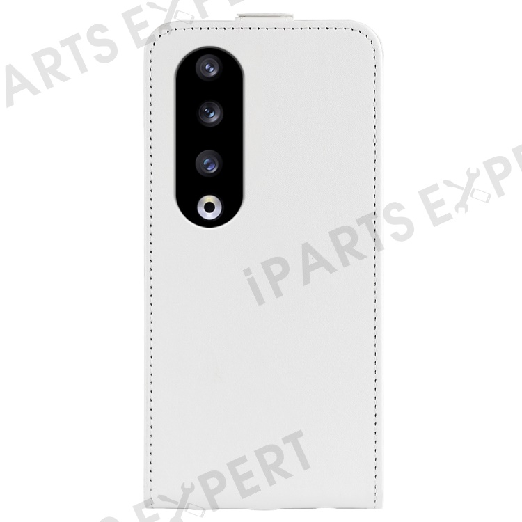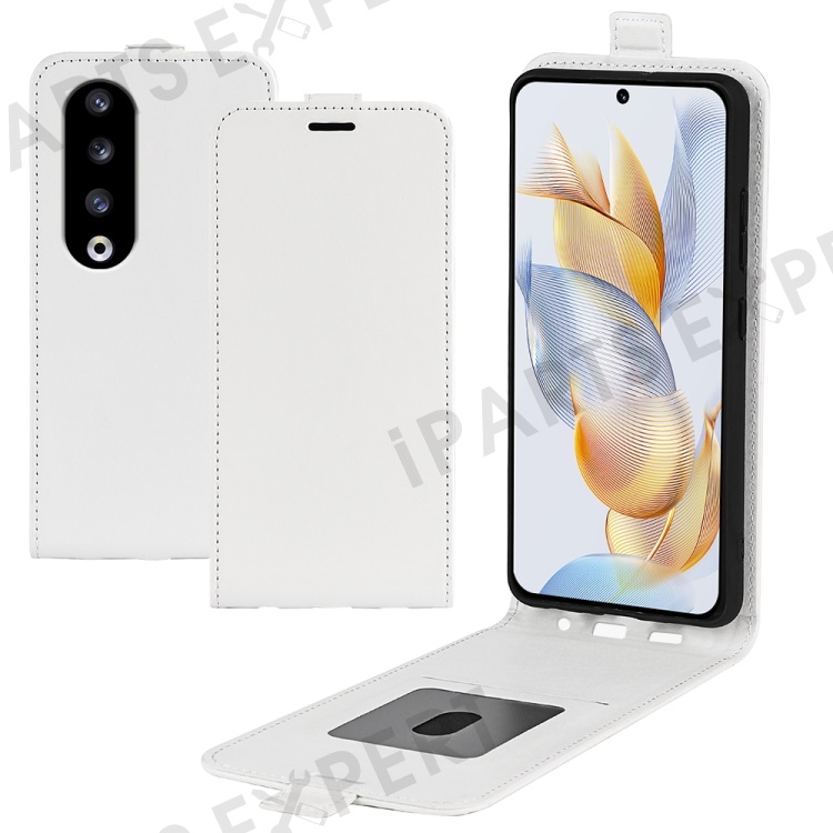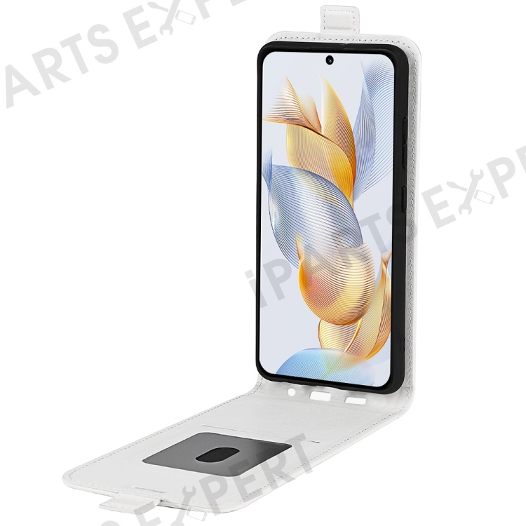 For Honor 90 Pro PU Leather Phone Case with Card Holder Vertical Flip Protective Phone Cover - White