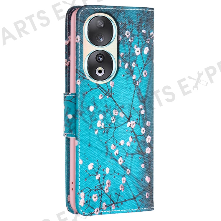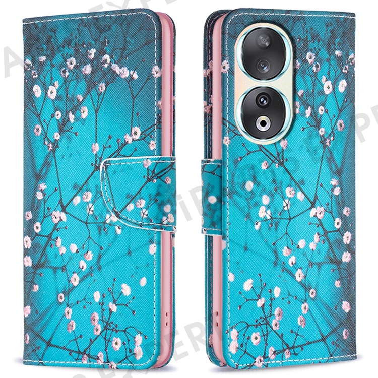 For Honor 90 PU Leather Pattern Printing Phone Case Stand Wallet Protective Cover - Plum Blossom