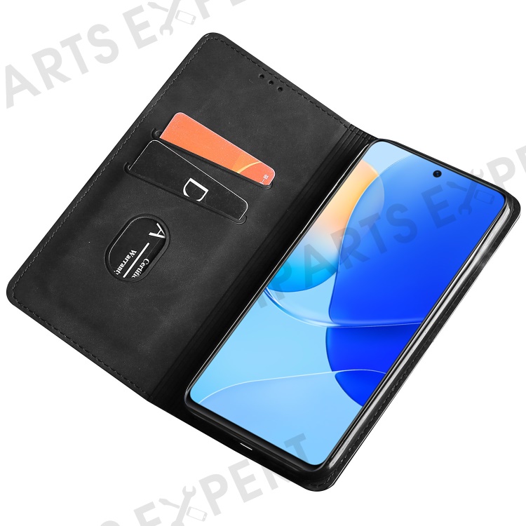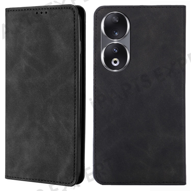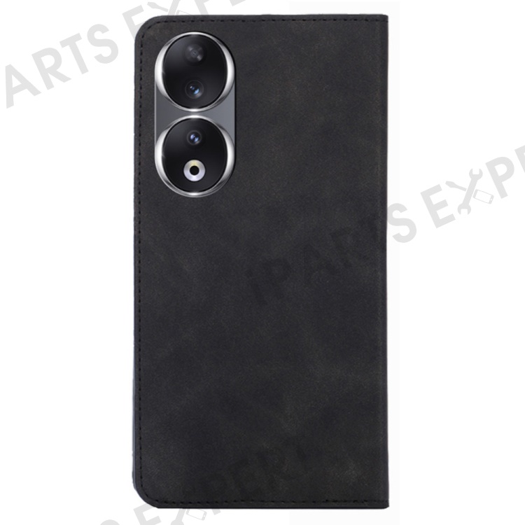 For Honor 90 Skin-touch Feeling Phone Cover Stand PU Leather Phone Case Shell with Card Slot - Black