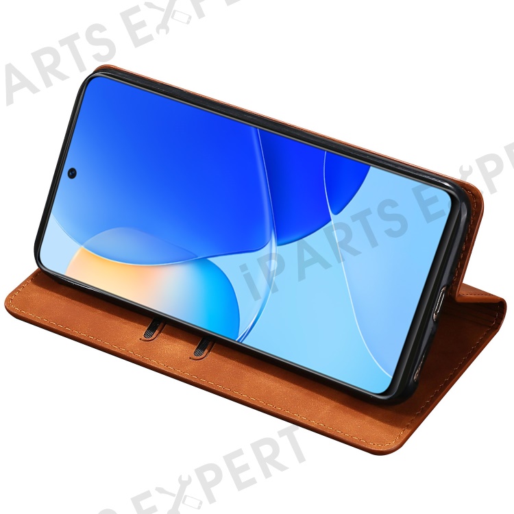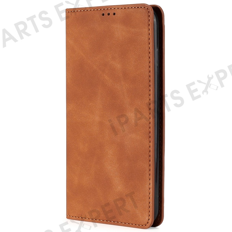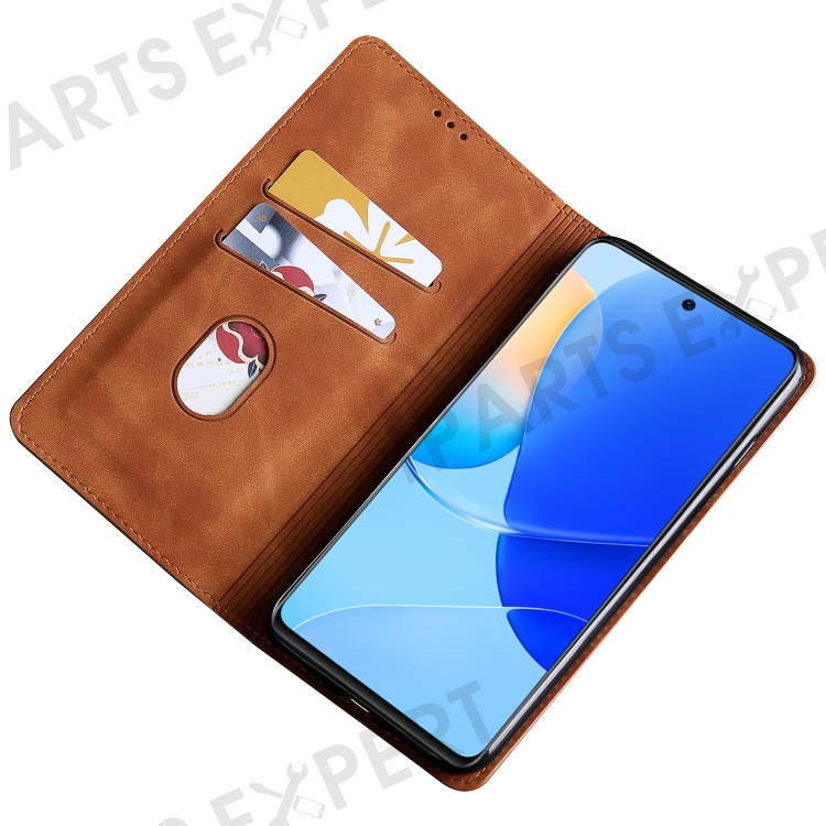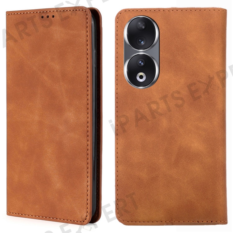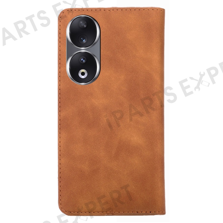 For Honor 90 Skin-touch Feeling Phone Cover Stand PU Leather Phone Case Shell with Card Slot - Light Brown