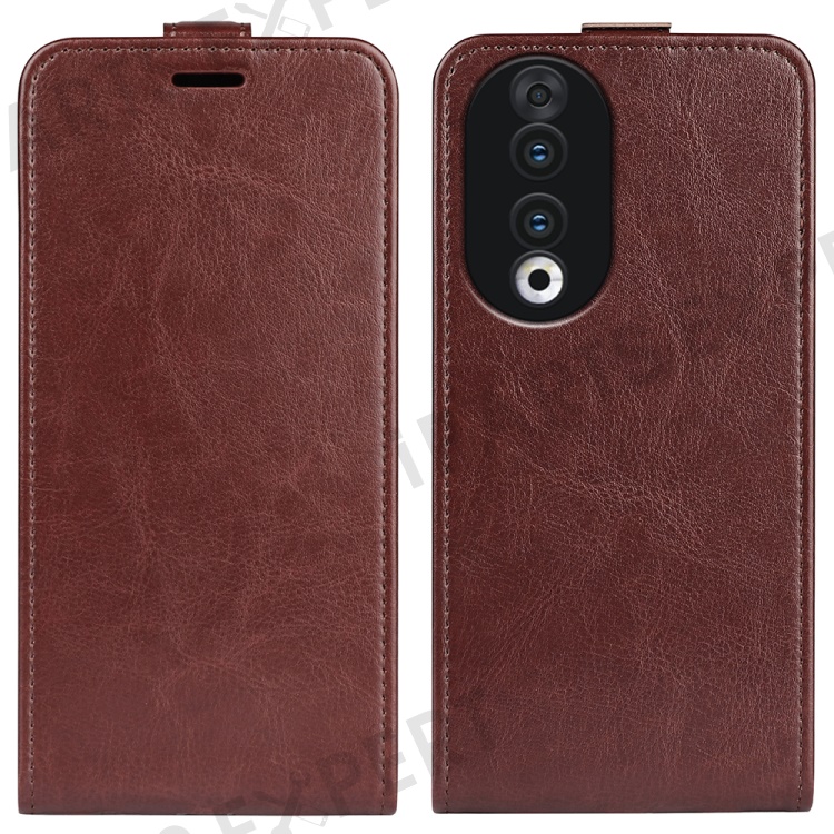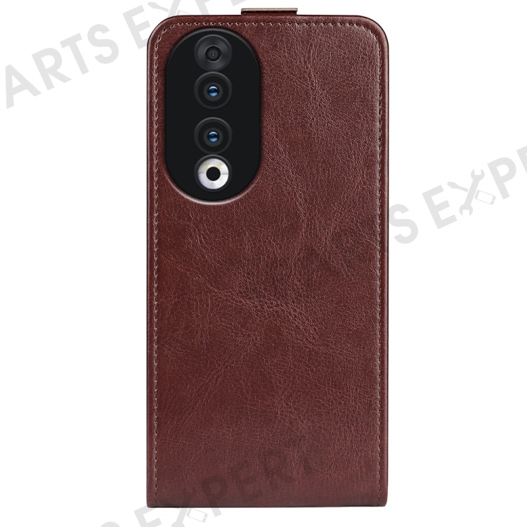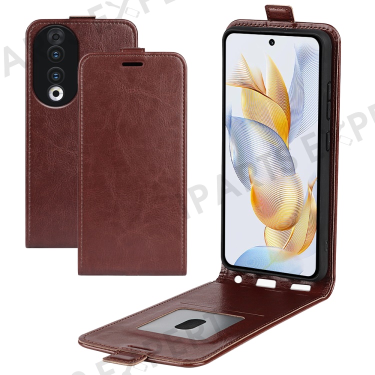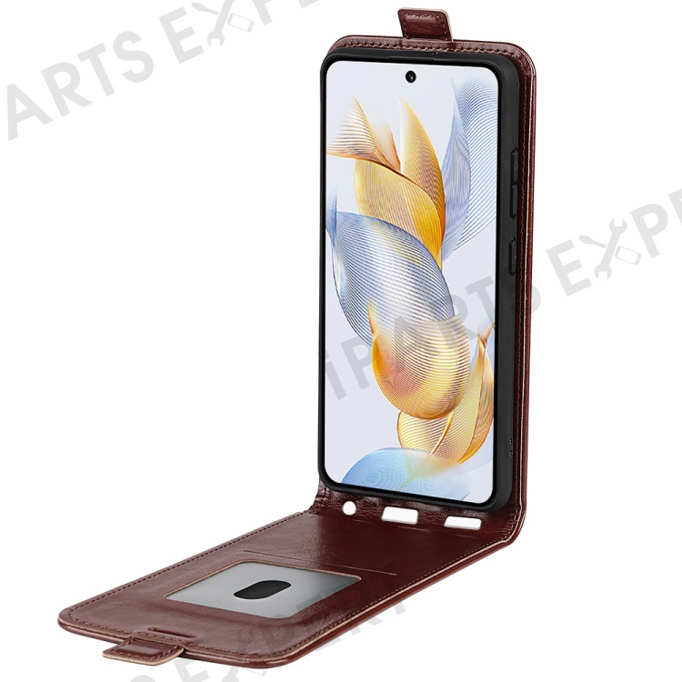 For Honor 90 TPU+PU Leather Phone Shell Vertical Flip Case Mobile Phone Cover with Card Slots - Brown