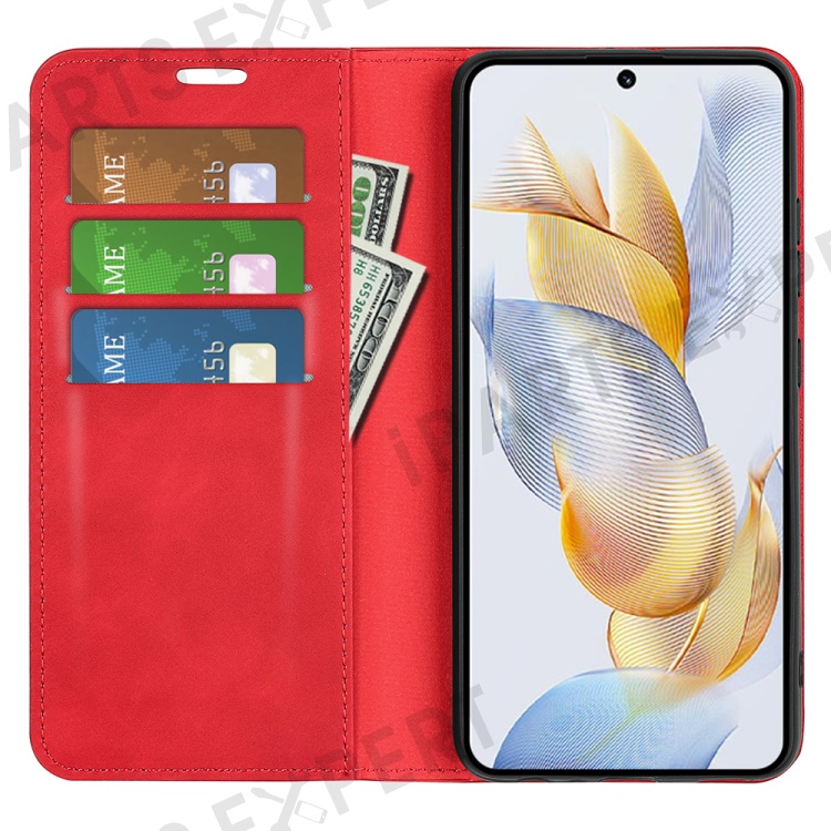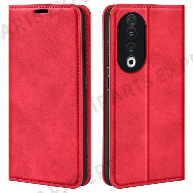 For Honor 90 Wallet Flip Cell Phone Case Skin-touch Stand Shockproof PU Leather Cover - Red