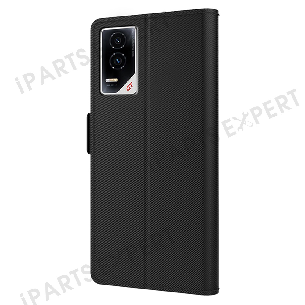 For Honor GT Case Stand PU Leather Phone Cover Card Holder Mirror - Black
