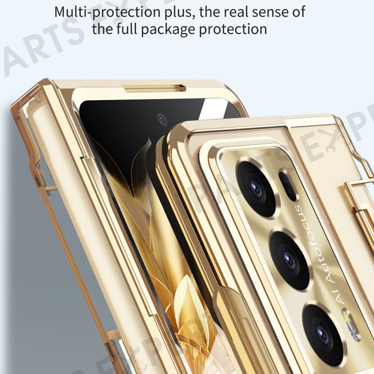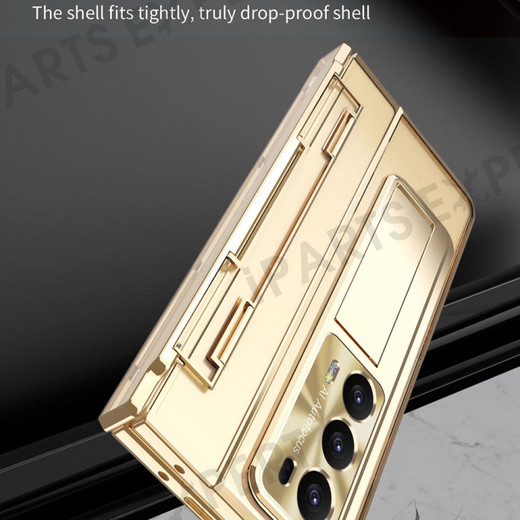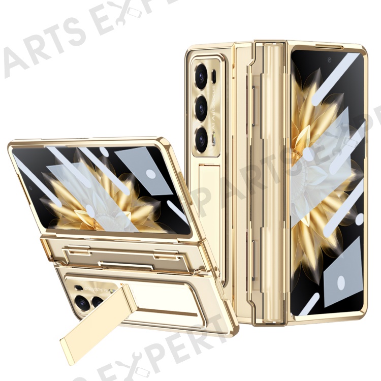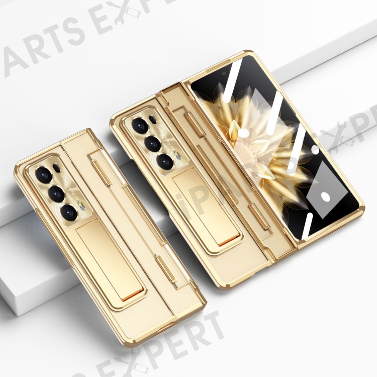 For Honor Magic V2 5G Hard PC Phone Case Folding Kickstand Full Body Protection Cover with Tempered Glass Film - Gold