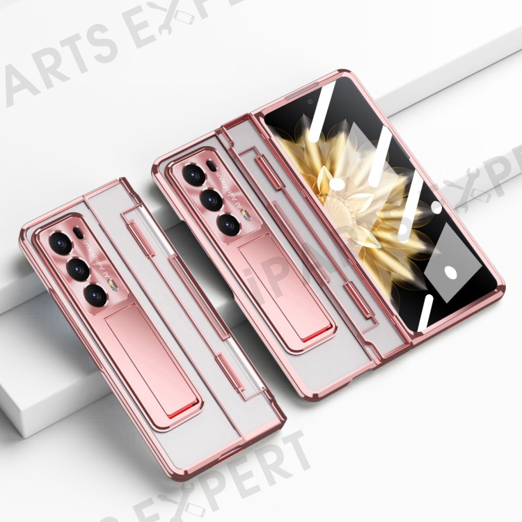For Honor Magic V2 5G Hard PC Phone Case Folding Kickstand Full Body Protection Cover with Tempered Glass Film - Rose Gold