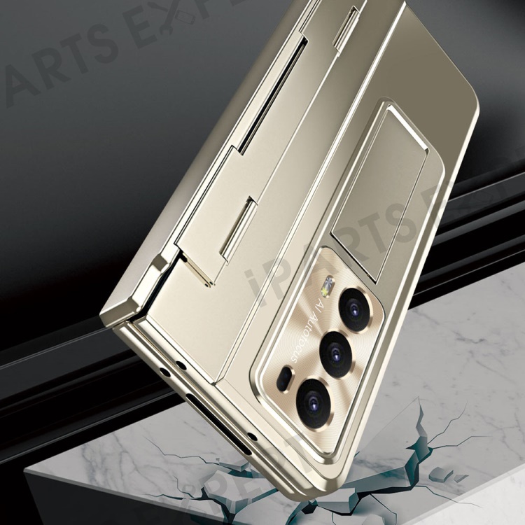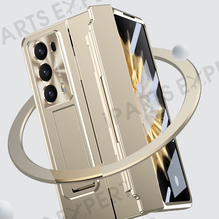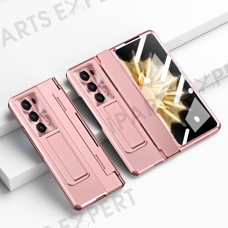 For Honor Magic V2 5G Hinge Protection Hard PC Case Kickstand Phone Cover with Tempered Glass Screen Film - Pink