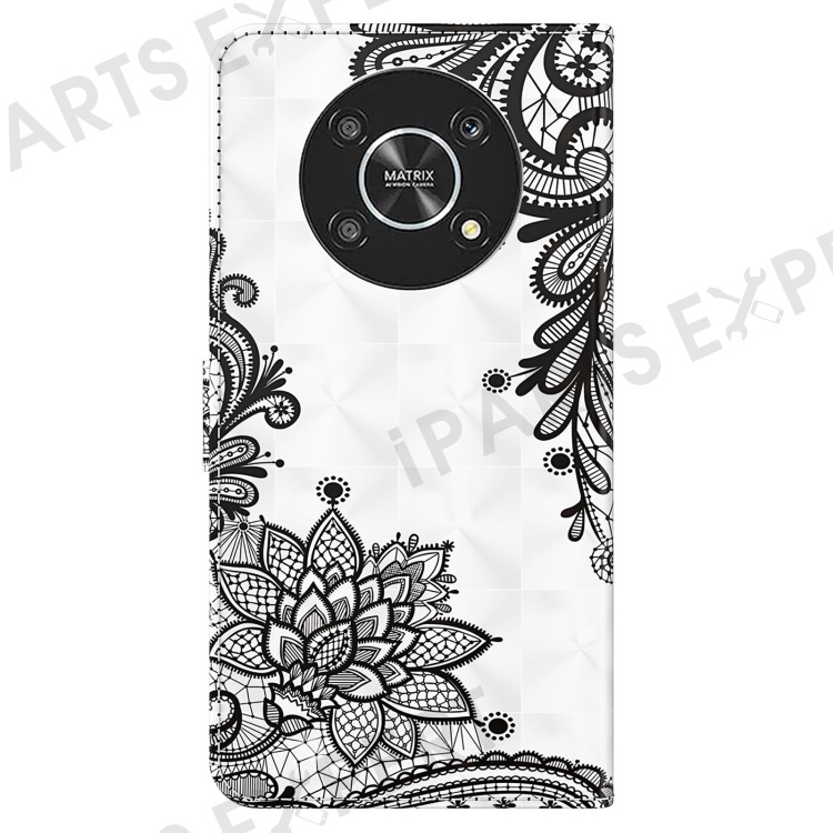 For Honor Magic4 Lite 4G / 5G PU Leather Flip Wallet Cover 3D Pattern Printing Stand Feature Magnetic Protective Phone Case with Strap - Lace Flower