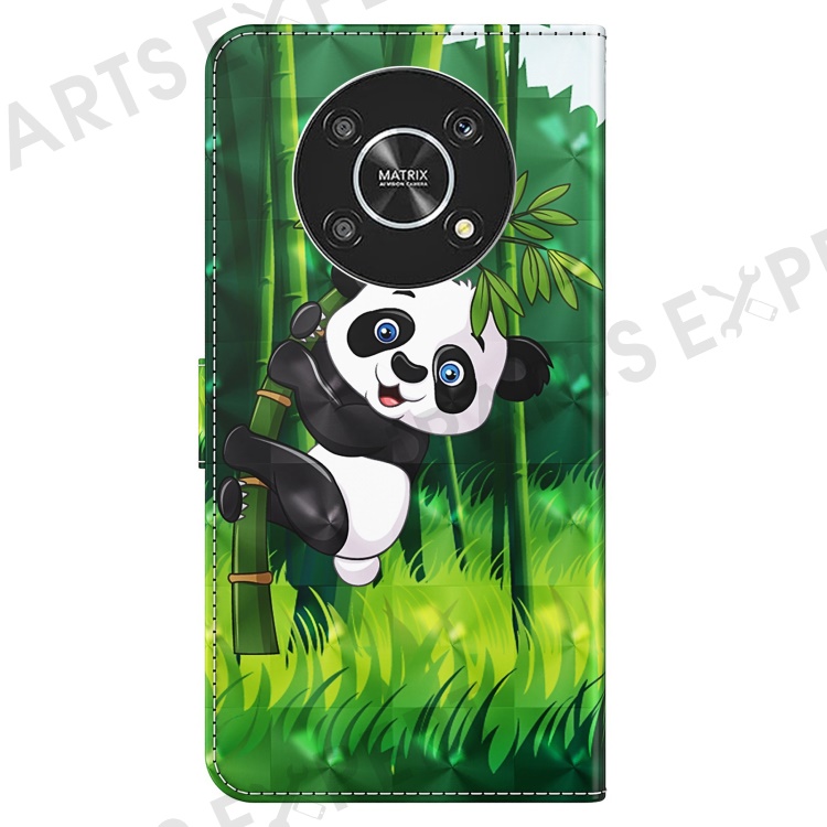 For Honor Magic4 Lite 4G / 5G PU Leather Flip Wallet Cover 3D Pattern Printing Stand Feature Magnetic Protective Phone Case with Strap - Panda Climbing