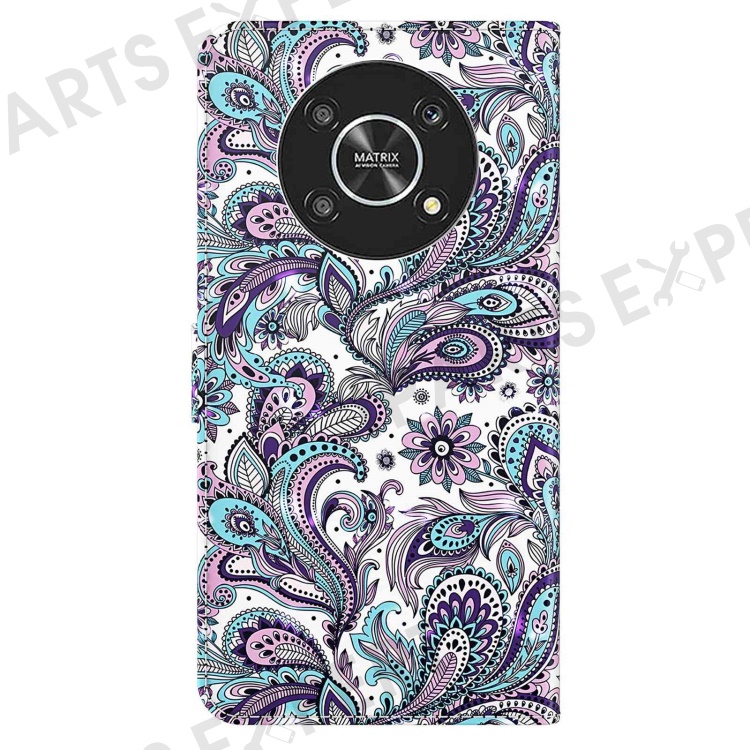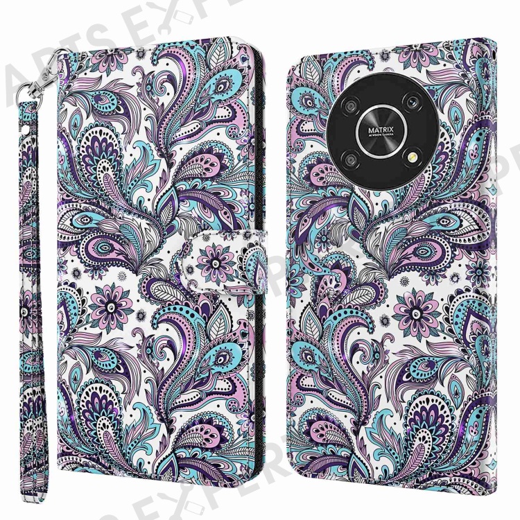 For Honor Magic4 Lite 4G / 5G PU Leather Flip Wallet Cover 3D Pattern Printing Stand Feature Magnetic Protective Phone Case with Strap - Purple Impatiens