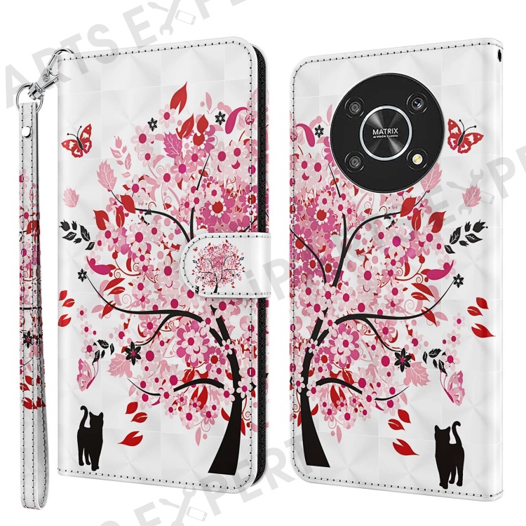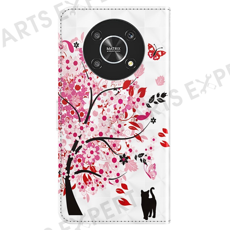 For Honor Magic4 Lite 4G / 5G PU Leather Flip Wallet Cover 3D Pattern Printing Stand Feature Magnetic Protective Phone Case with Strap - Wish Tree