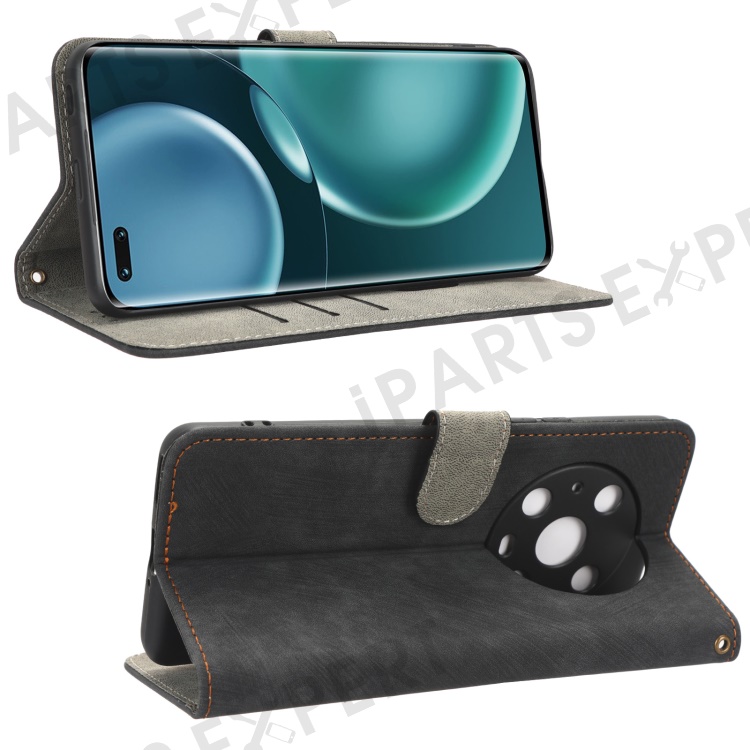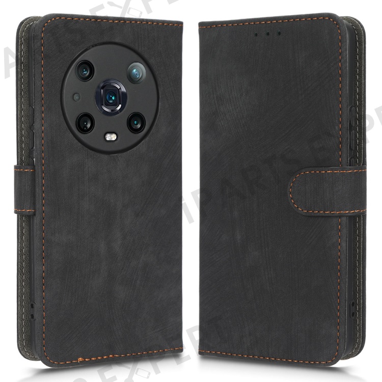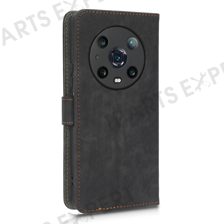 For Honor Magic4 Pro 5G RFID Blocking PU Leather Phone Case Protective Magnetic Mobile Phone Cover with Wallet Stand - Black