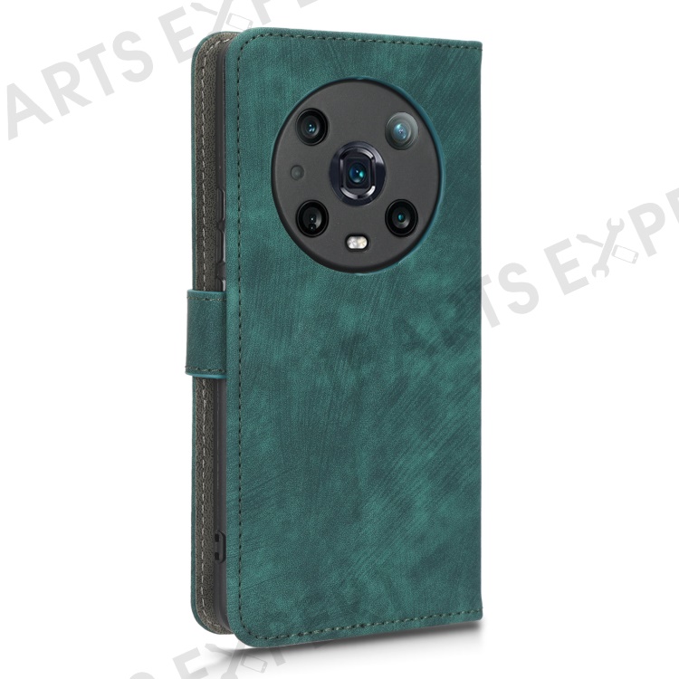 For Honor Magic4 Pro 5G RFID Blocking PU Leather Phone Case Protective Magnetic Mobile Phone Cover with Wallet Stand - Green