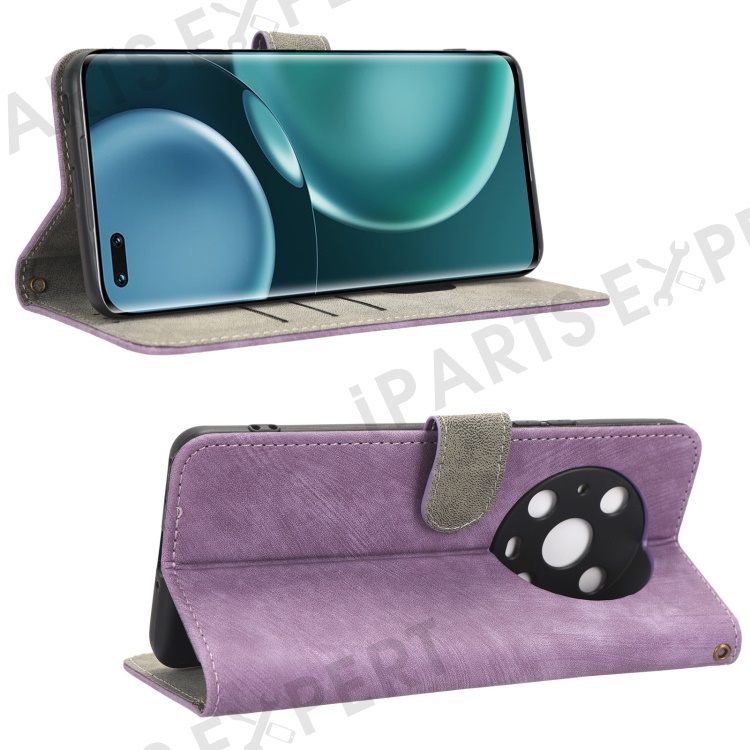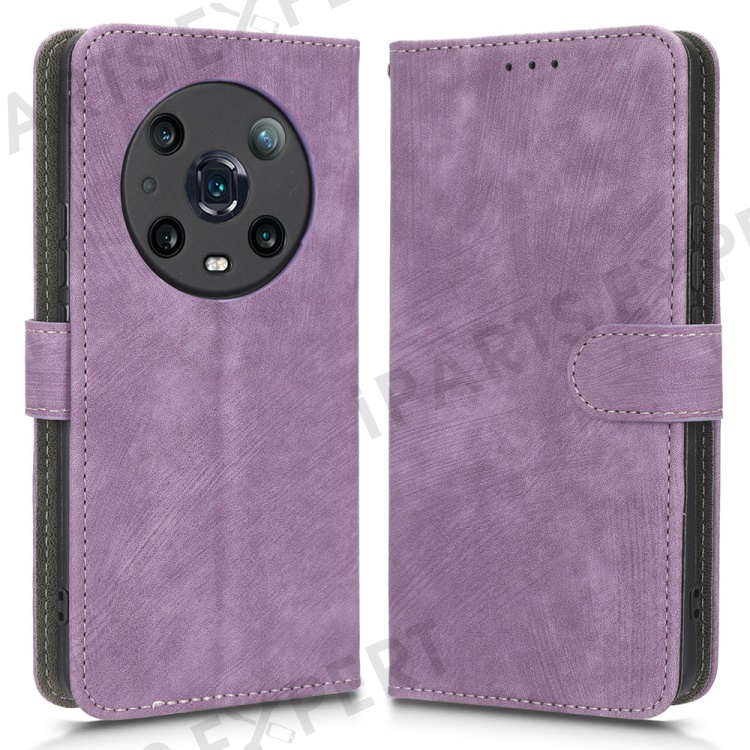 For Honor Magic4 Pro 5G RFID Blocking PU Leather Phone Case Protective Magnetic Mobile Phone Cover with Wallet Stand - Purple