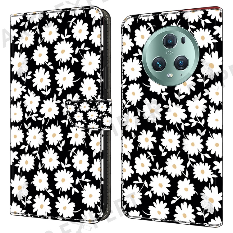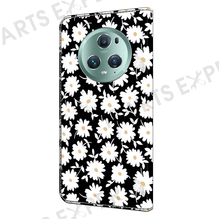 For Honor Magic5 Pro Leather Phone Case Wallet 3D Pattern All Inclusive Cover - Floral