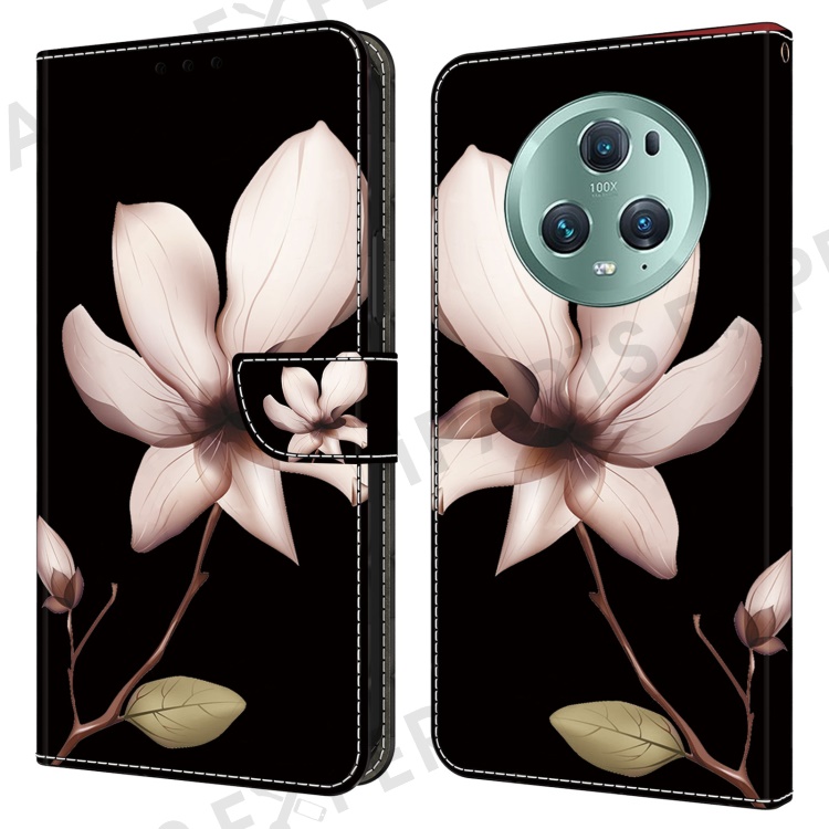 For Honor Magic5 Pro Leather Phone Case Wallet 3D Pattern All Inclusive Cover - Pink Flower